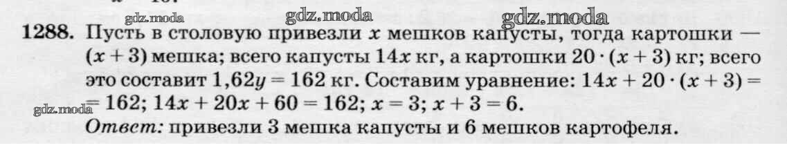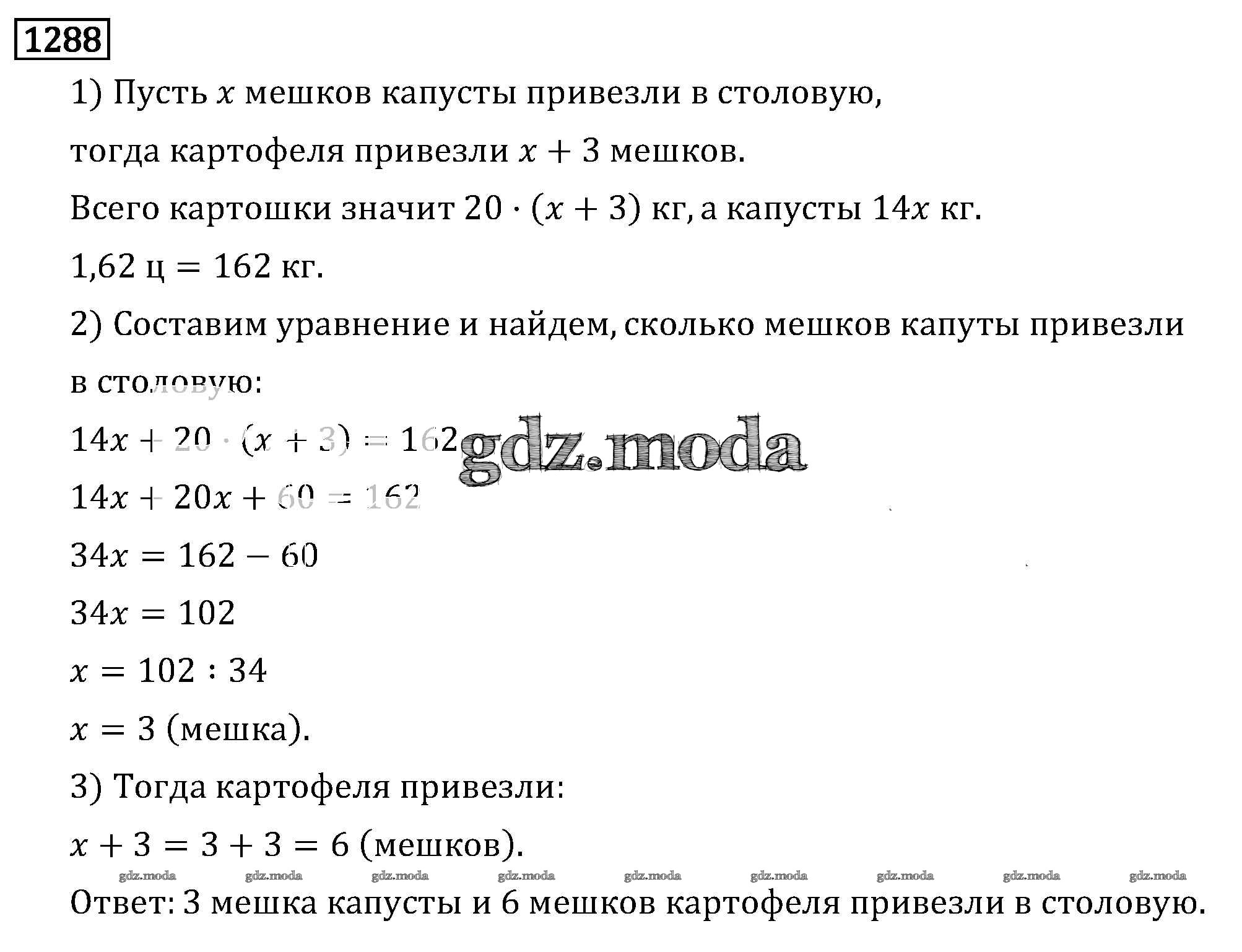 ОТВЕТ на задание № 1288 Учебник по Математике 6 класс Виленкин