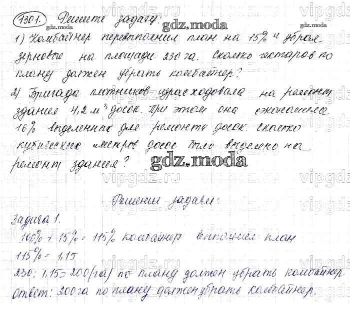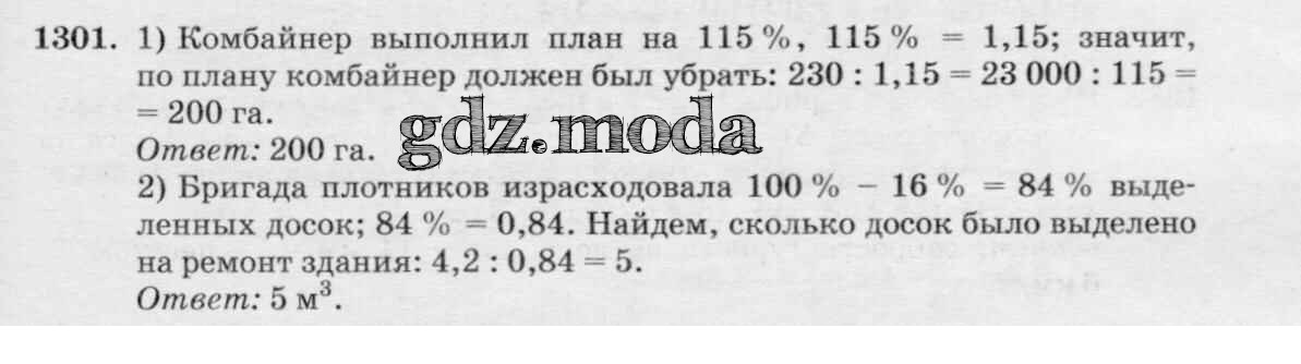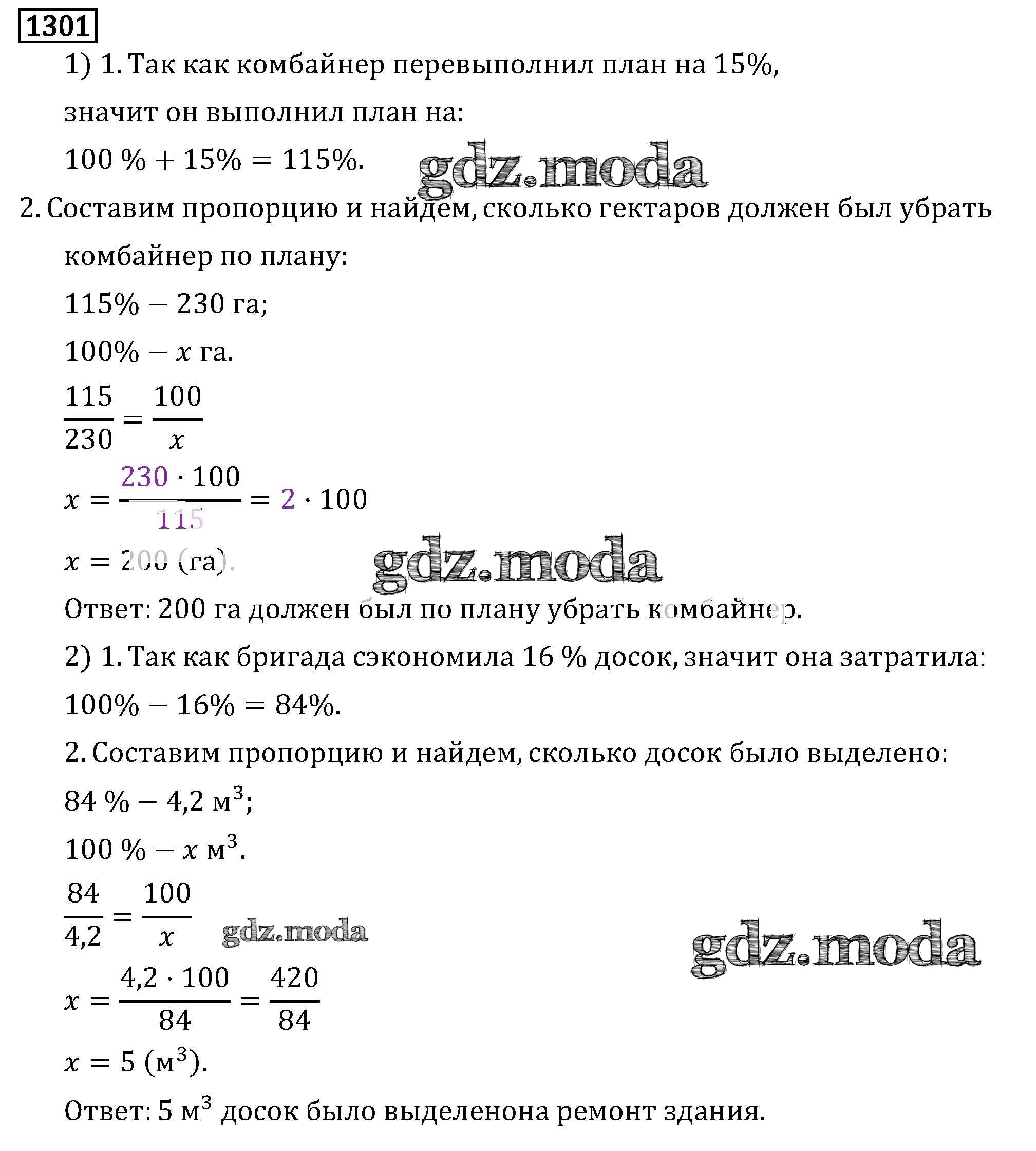 ОТВЕТ на задание № 1301 Учебник по Математике 6 класс Виленкин