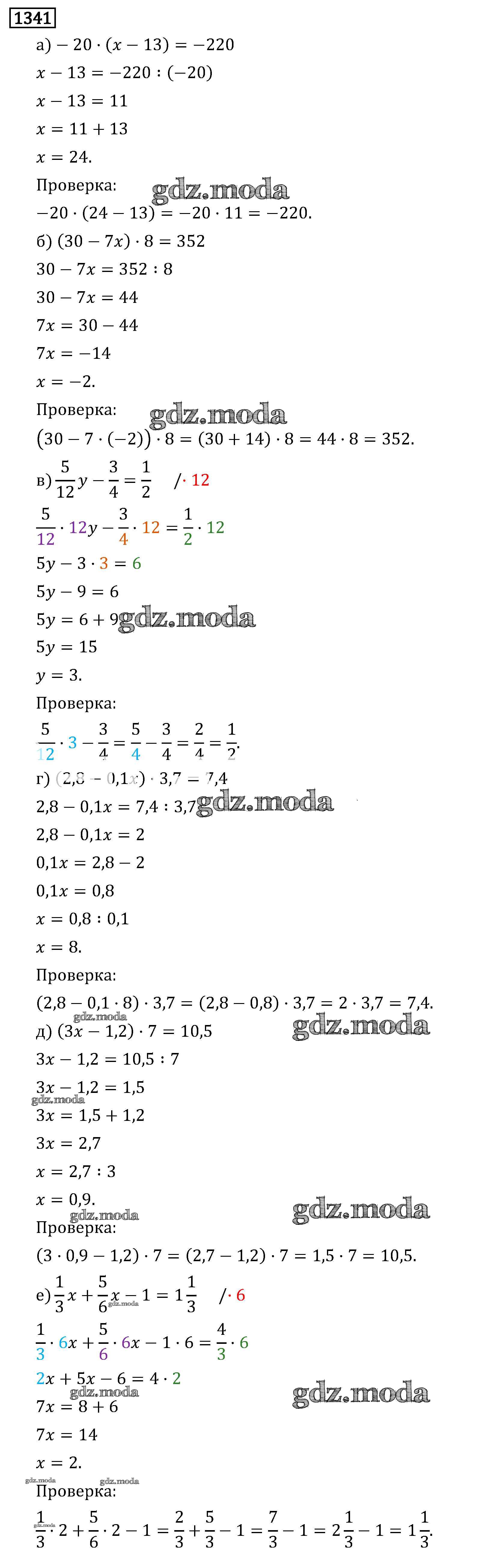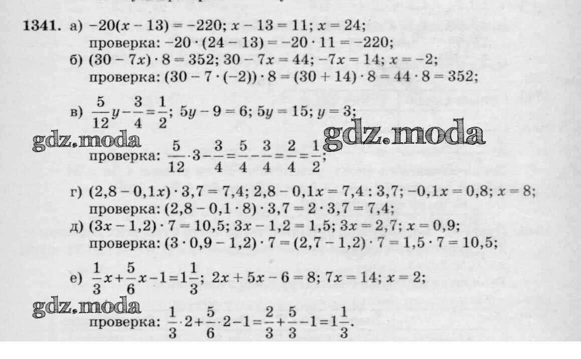 ОТВЕТ на задание № 1341 Учебник по Математике 6 класс Виленкин