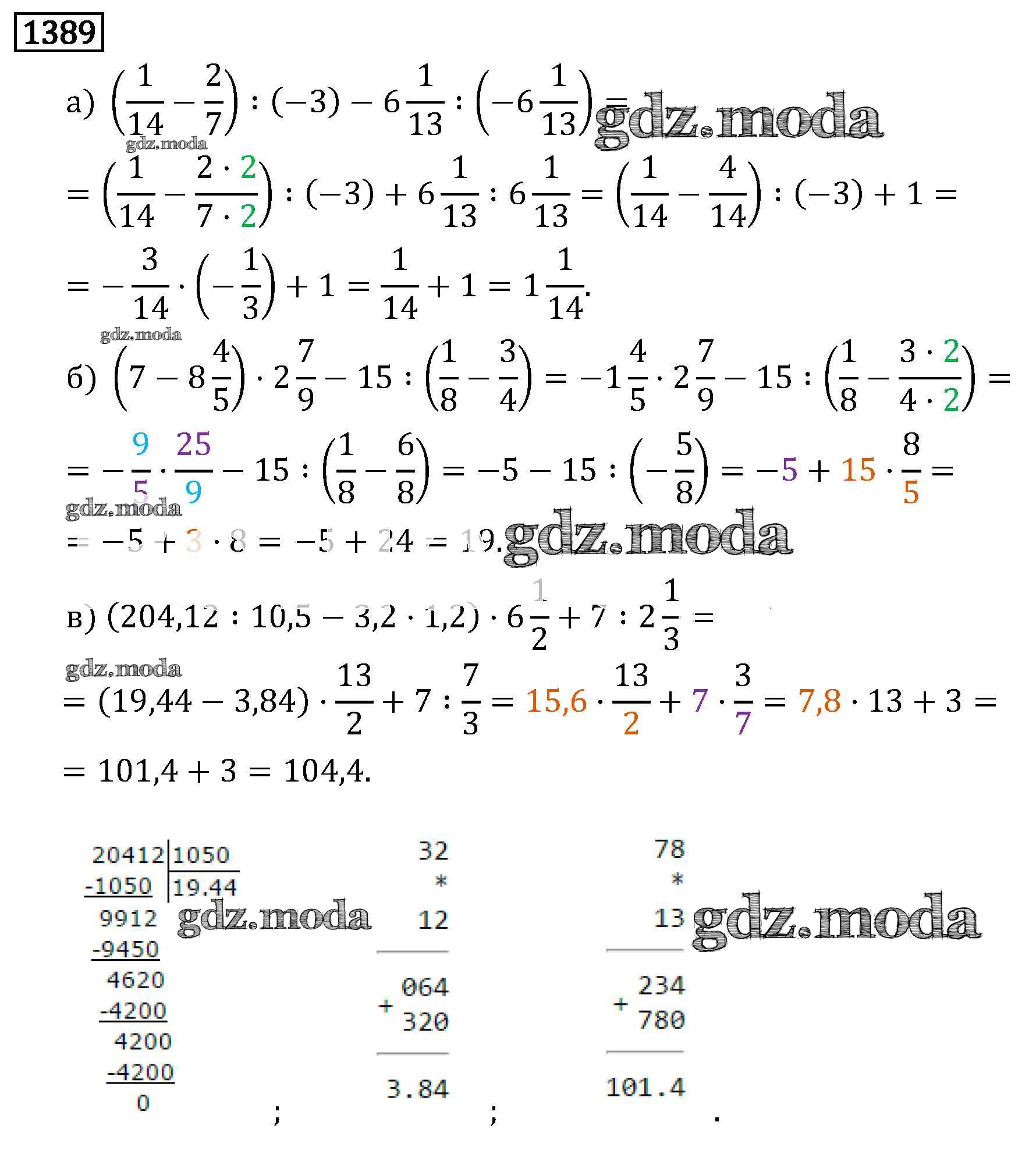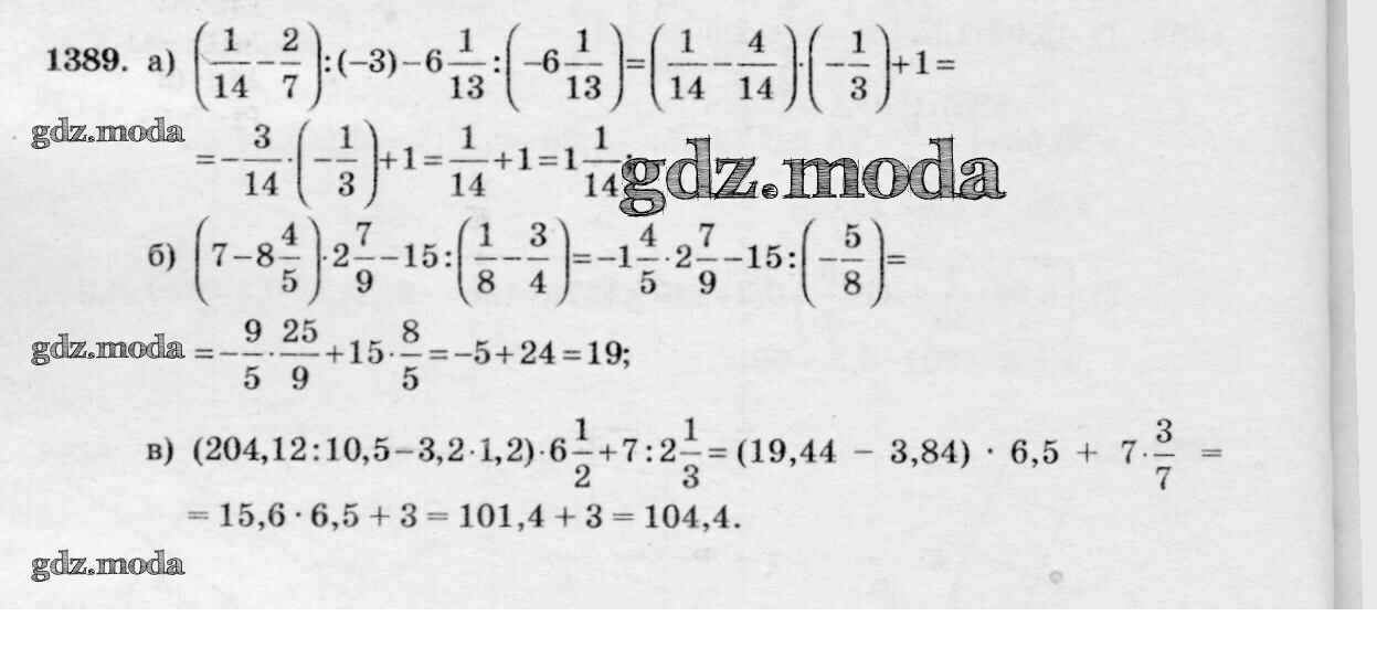 ОТВЕТ на задание № 1389 Учебник по Математике 6 класс Виленкин