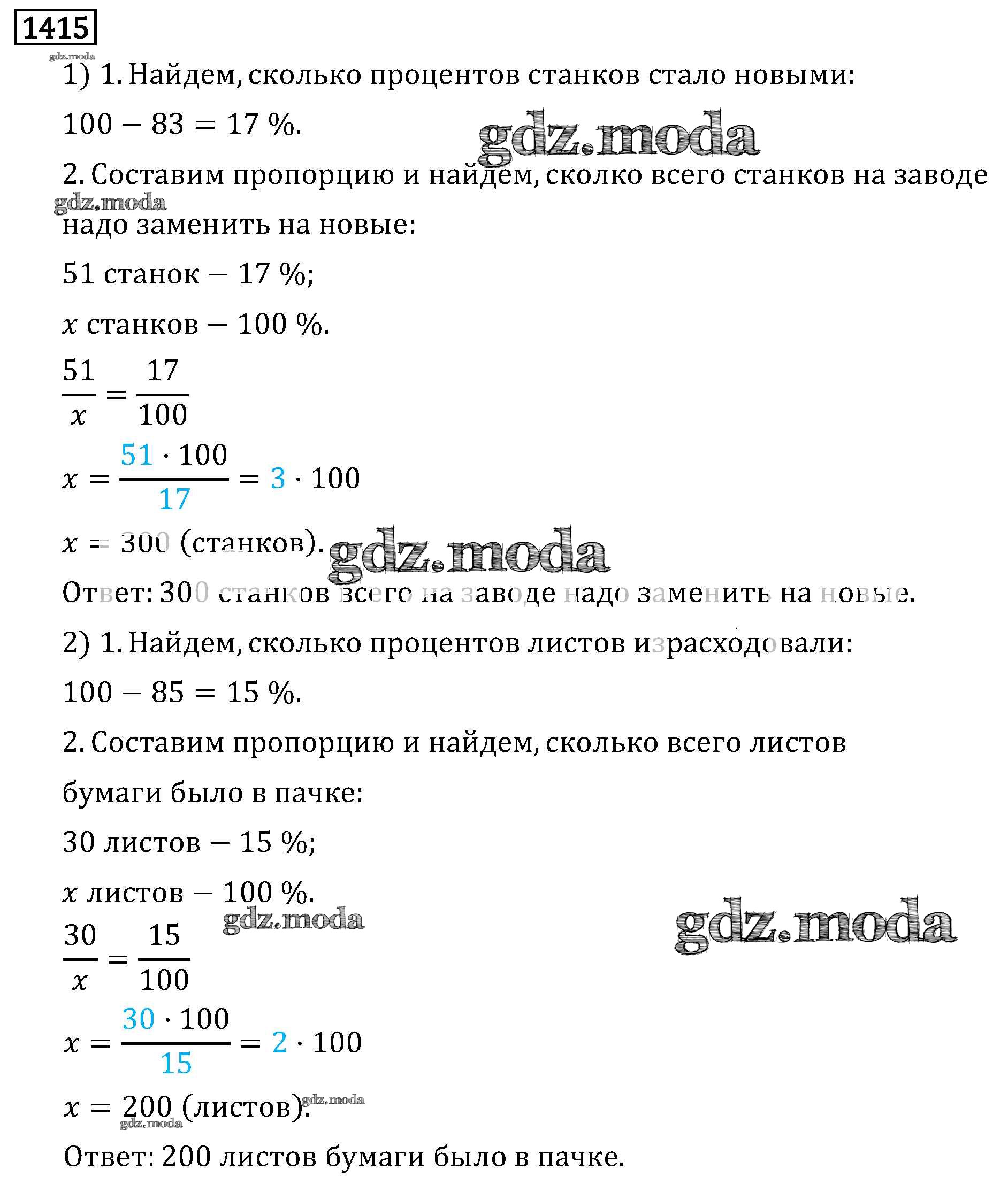 ОТВЕТ на задание № 1415 Учебник по Математике 6 класс Виленкин