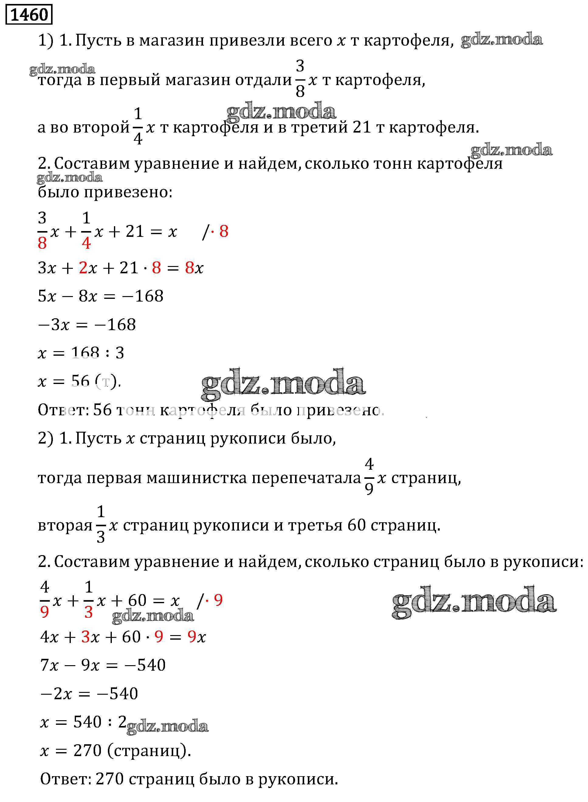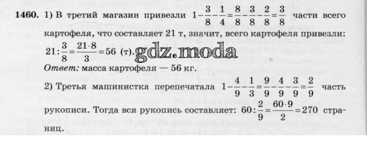 ОТВЕТ на задание № 1460 Учебник по Математике 6 класс Виленкин