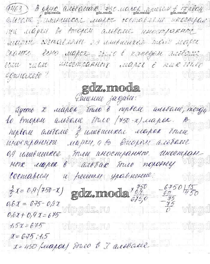 ОТВЕТ на задание № 1463 Учебник по Математике 6 класс Виленкин