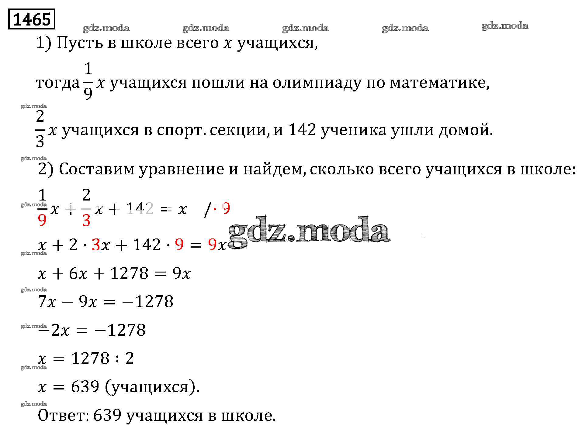 ОТВЕТ на задание № 1465 Учебник по Математике 6 класс Виленкин