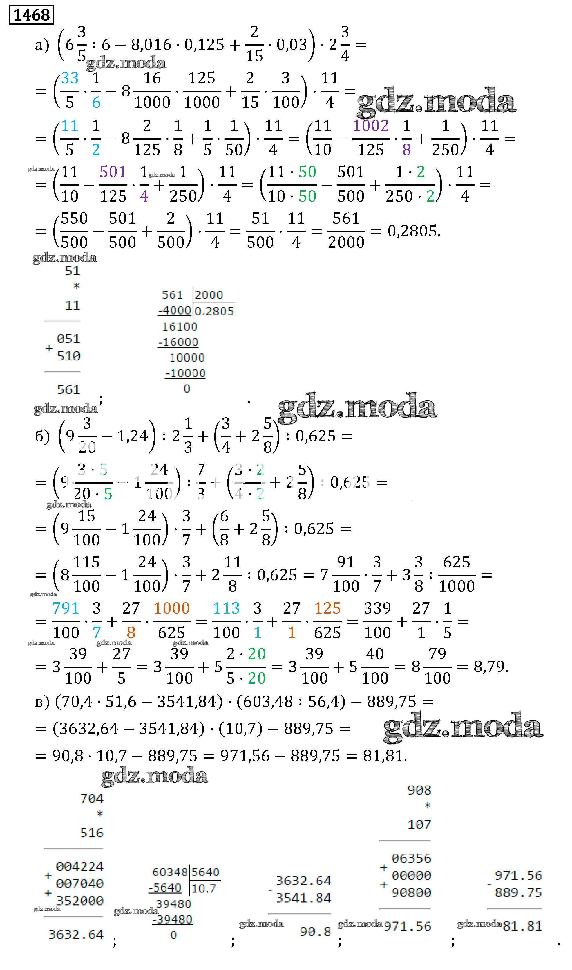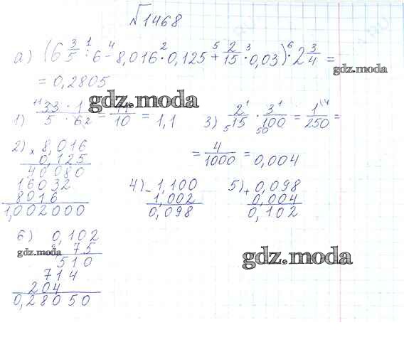 ОТВЕТ на задание № 1468 Учебник по Математике 6 класс Виленкин