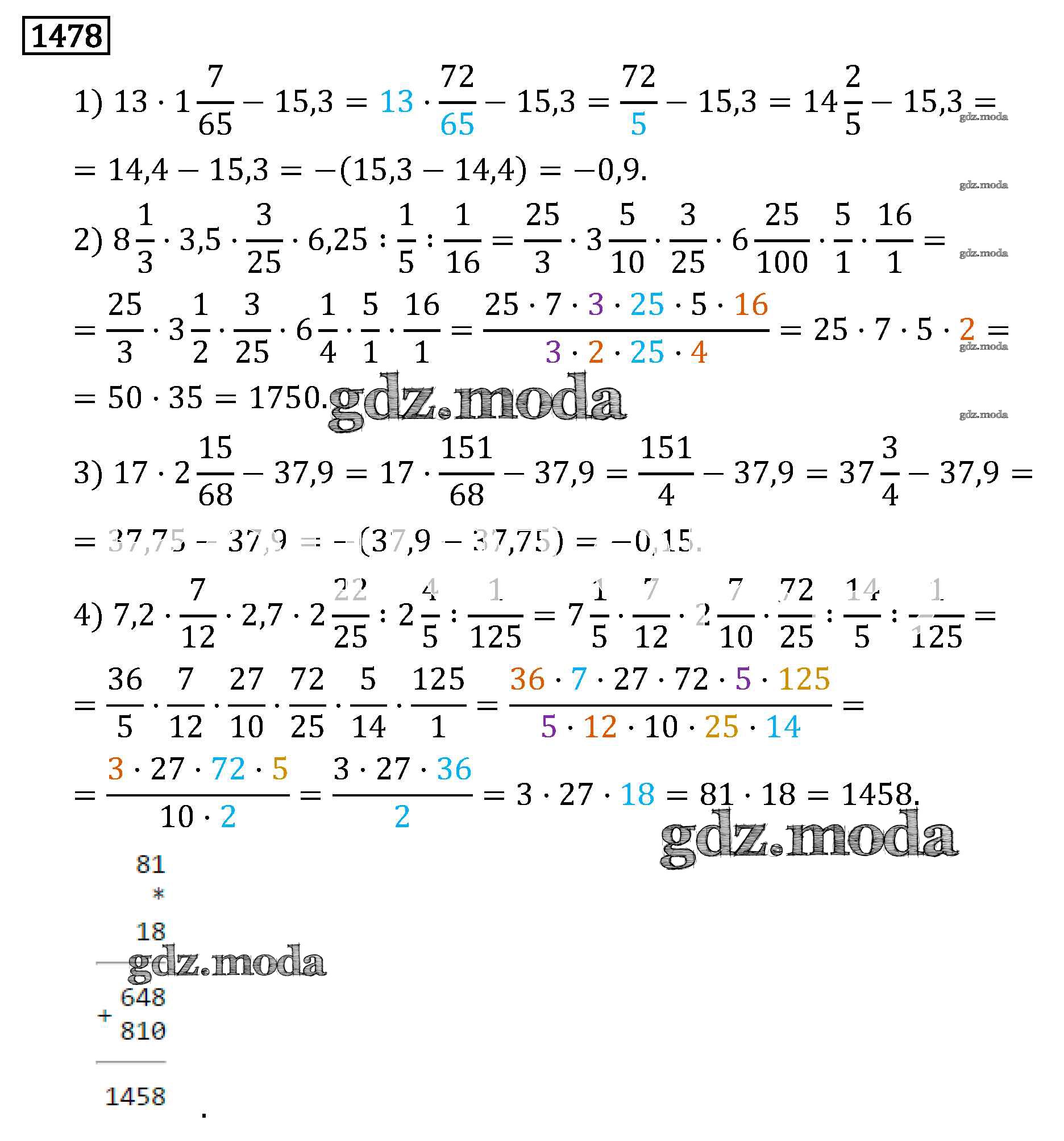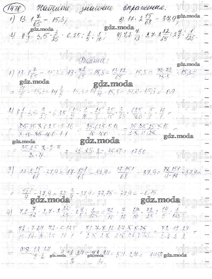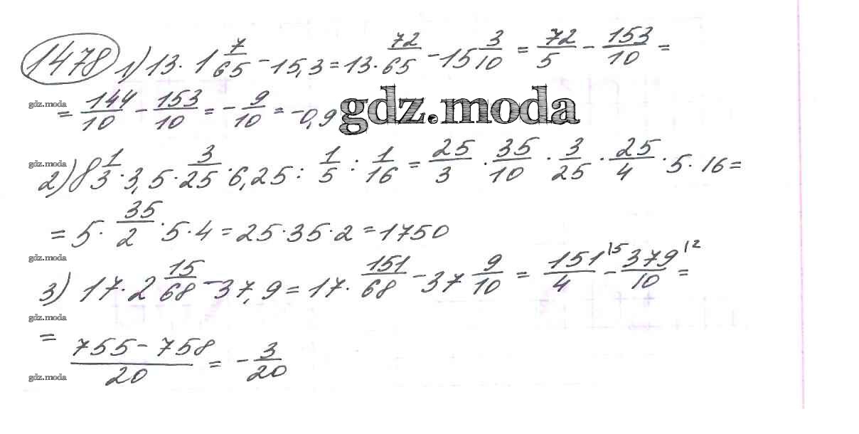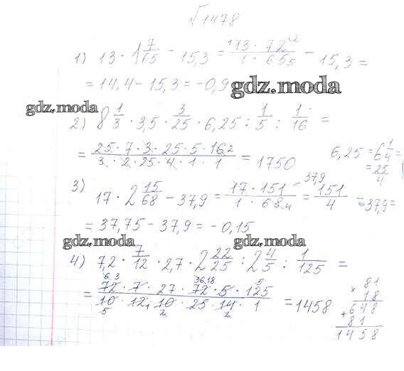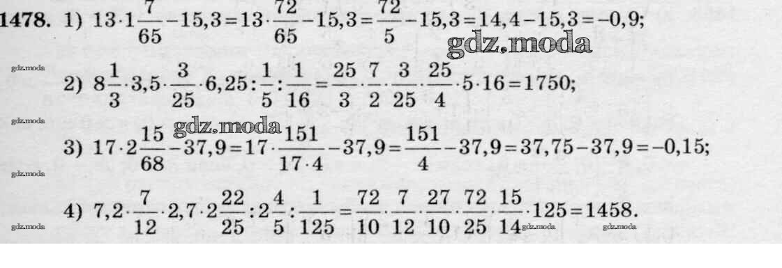 ОТВЕТ на задание № 1478 Учебник по Математике 6 класс Виленкин