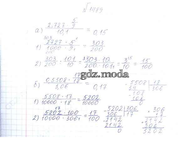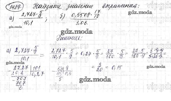 ОТВЕТ на задание № 1489 Учебник по Математике 6 класс Виленкин