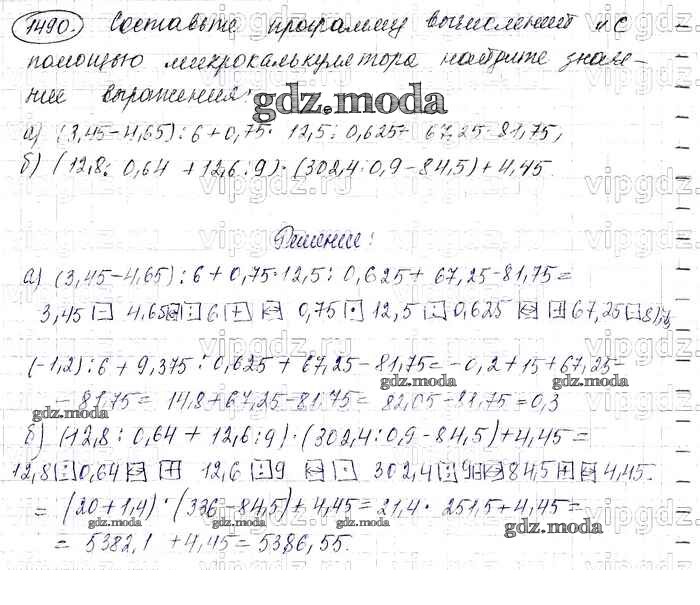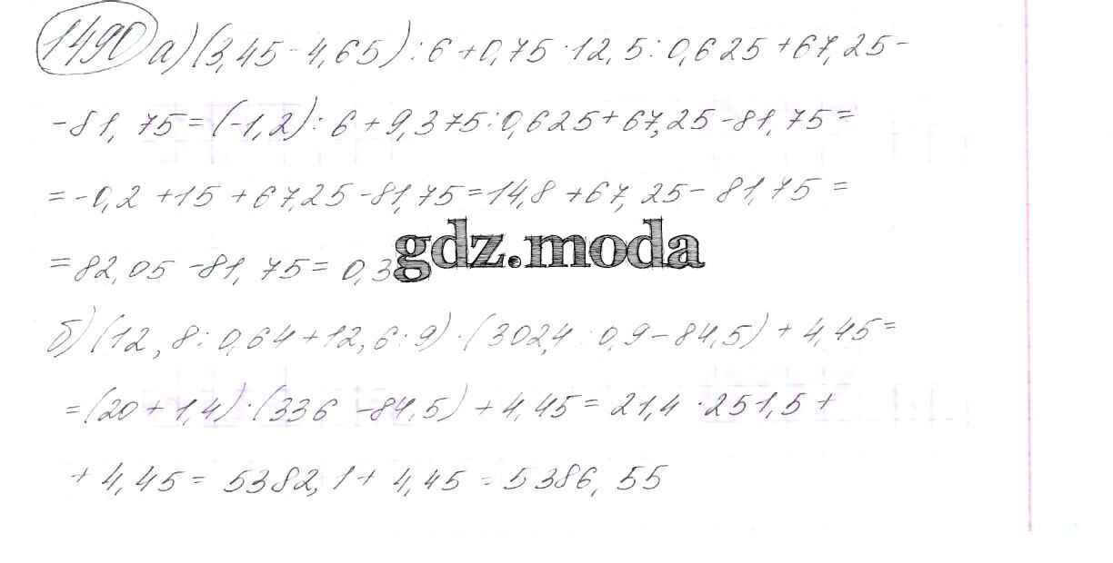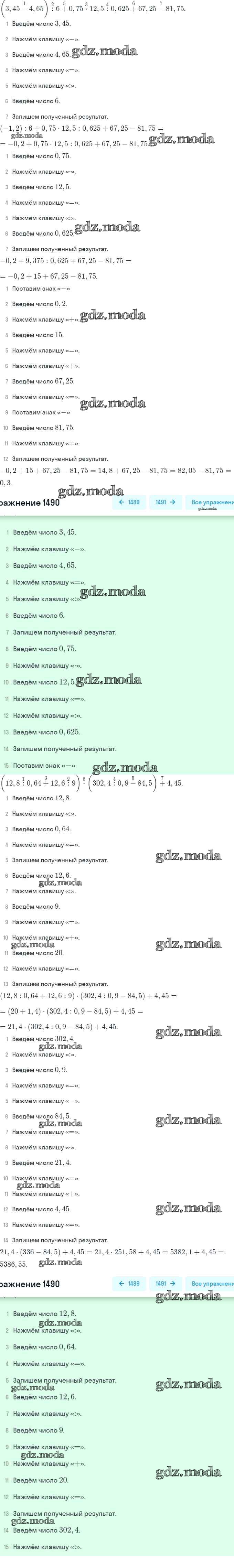 ОТВЕТ на задание № 1490 Учебник по Математике 6 класс Виленкин