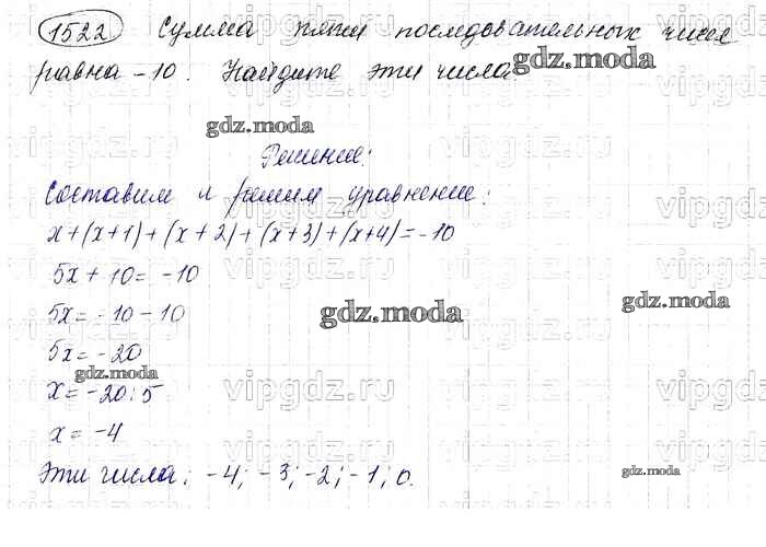 ОТВЕТ на задание № 1522 Учебник по Математике 6 класс Виленкин