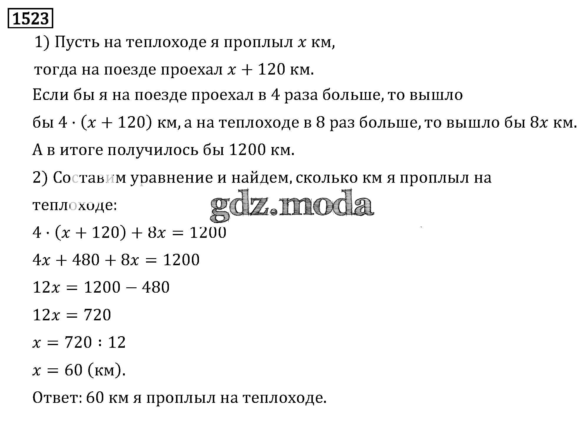 ОТВЕТ на задание № 1523 Учебник по Математике 6 класс Виленкин