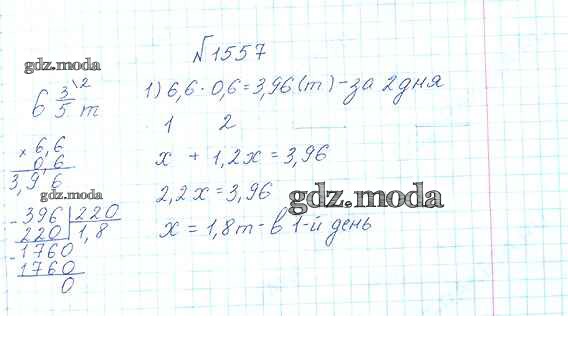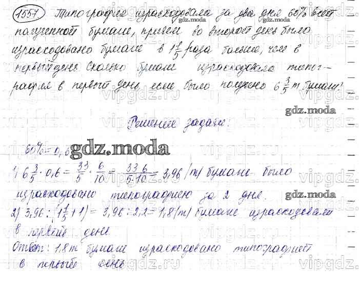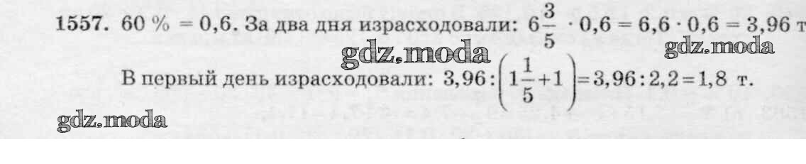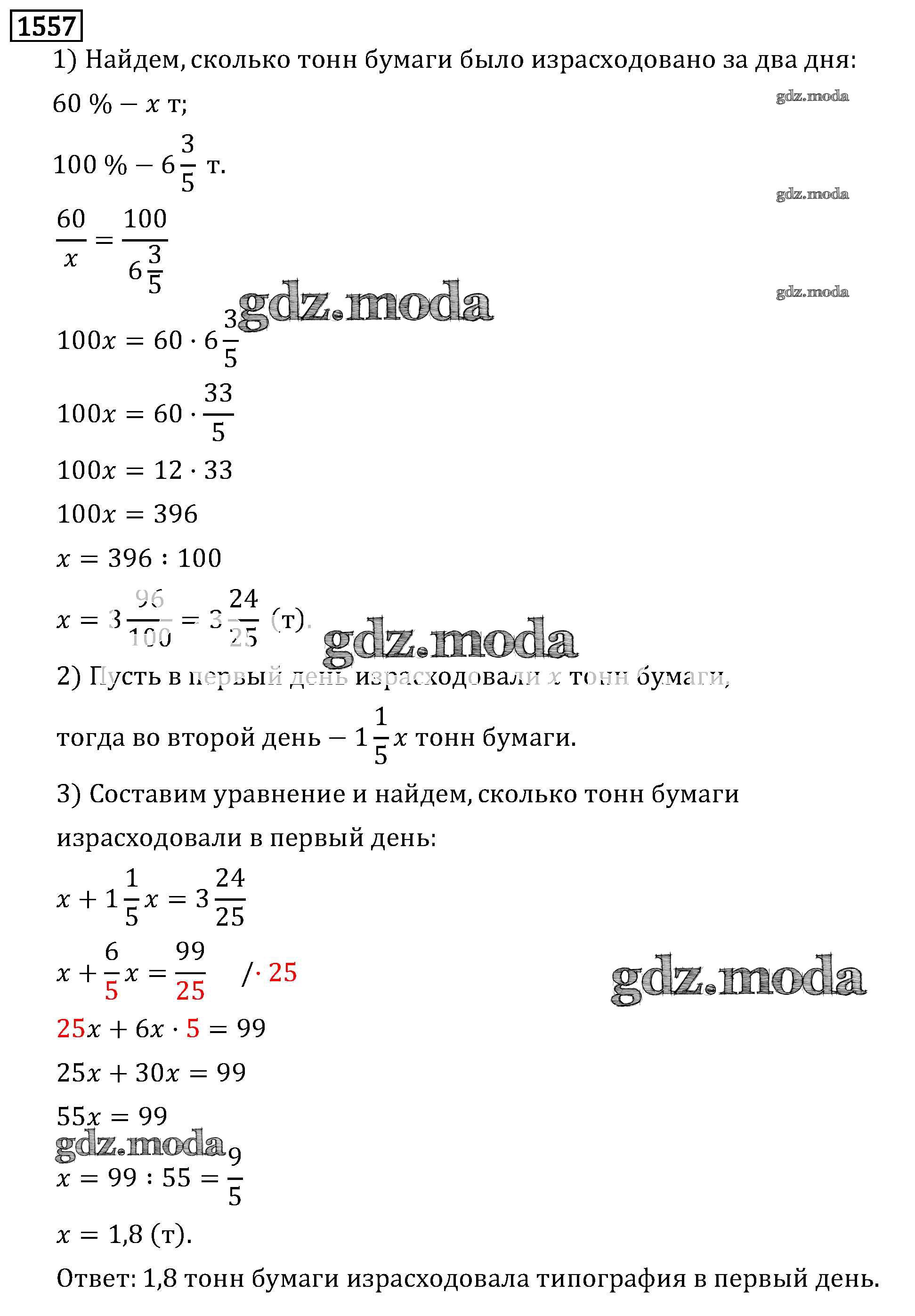 ОТВЕТ на задание № 1557 Учебник по Математике 6 класс Виленкин