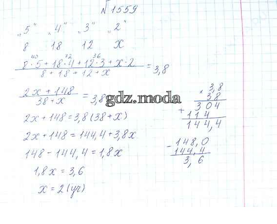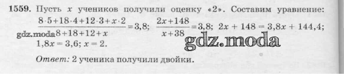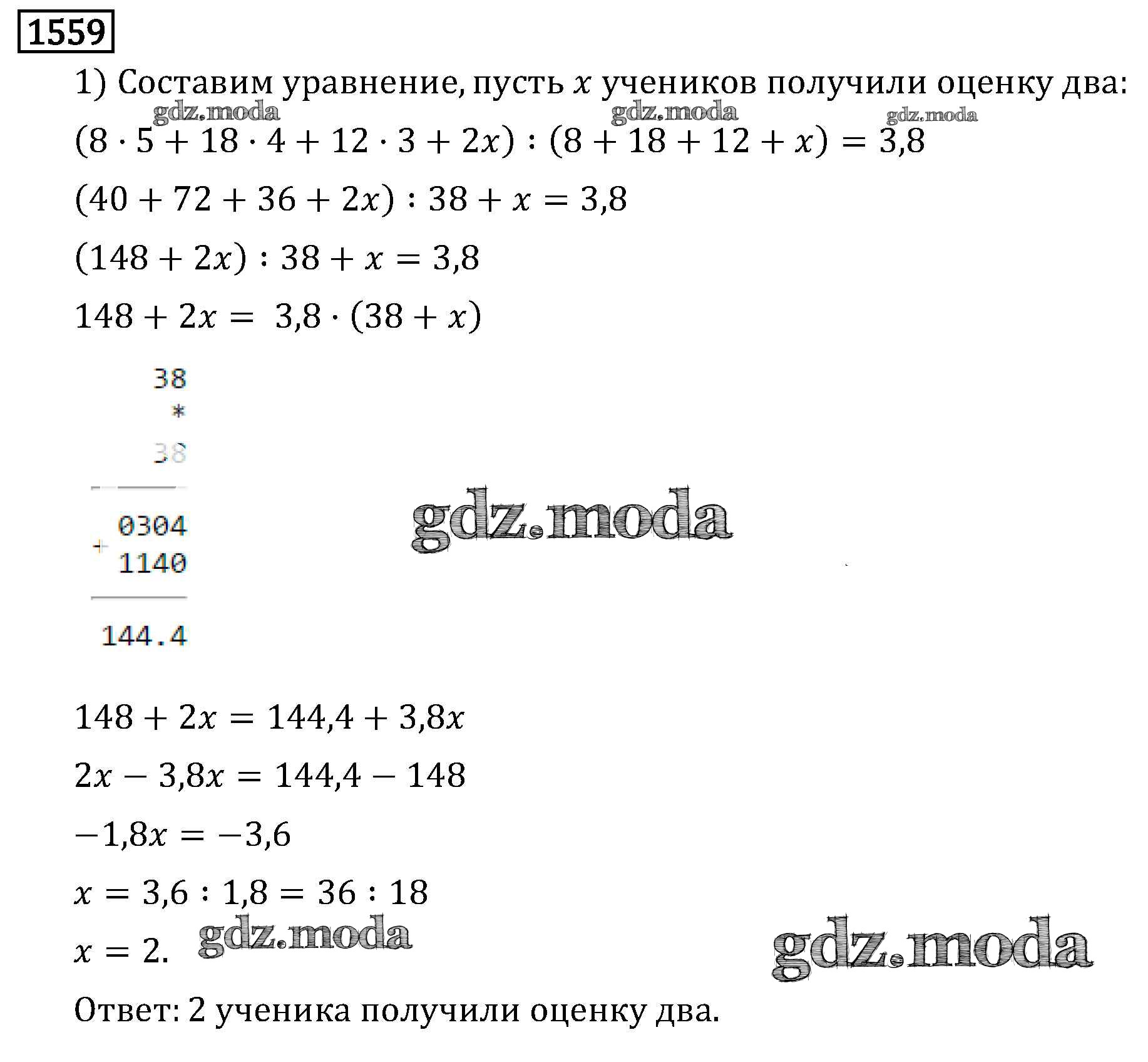 ОТВЕТ на задание № 1559 Учебник по Математике 6 класс Виленкин