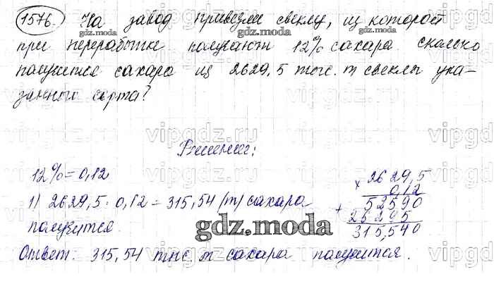 ОТВЕТ на задание № 1576 Учебник по Математике 6 класс Виленкин