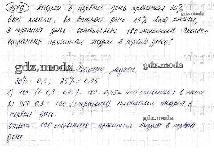 ОТВЕТ на задание № 1579 Учебник по Математике 6 класс Виленкин
