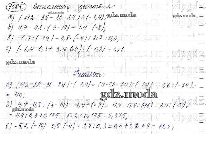 ОТВЕТ на задание № 1585 Учебник по Математике 6 класс Виленкин