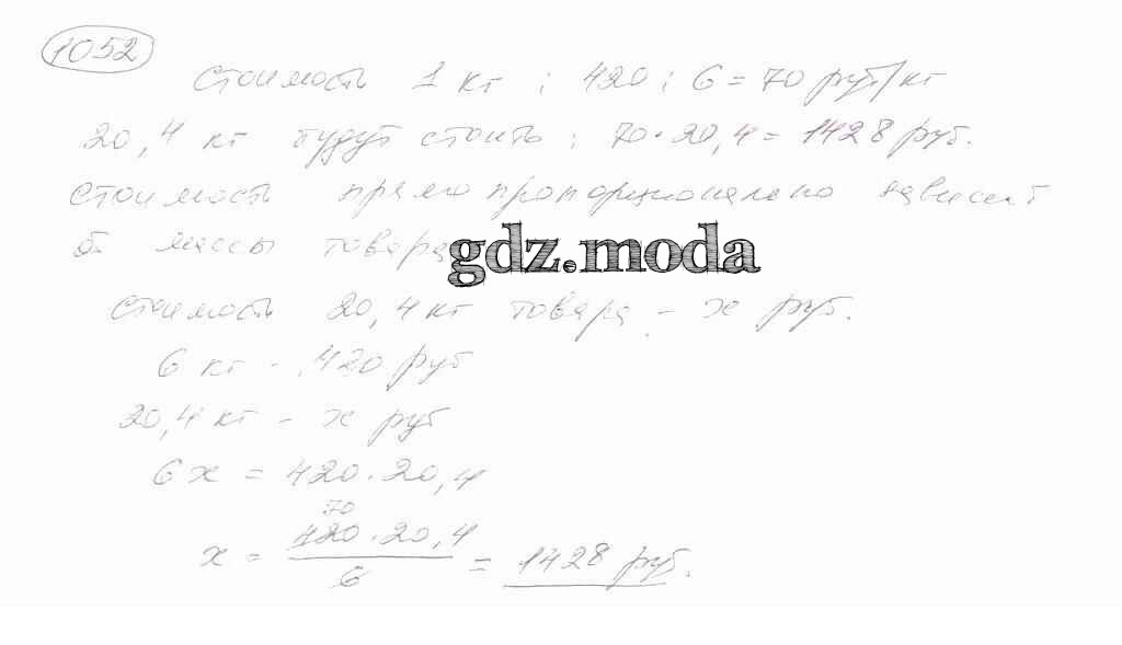 ГДЗ решение к заданию № 1052 Математика 6 класс Зубарева И.И. Мнемозина 2015 ФГОС бесплатно на гдз.мода!