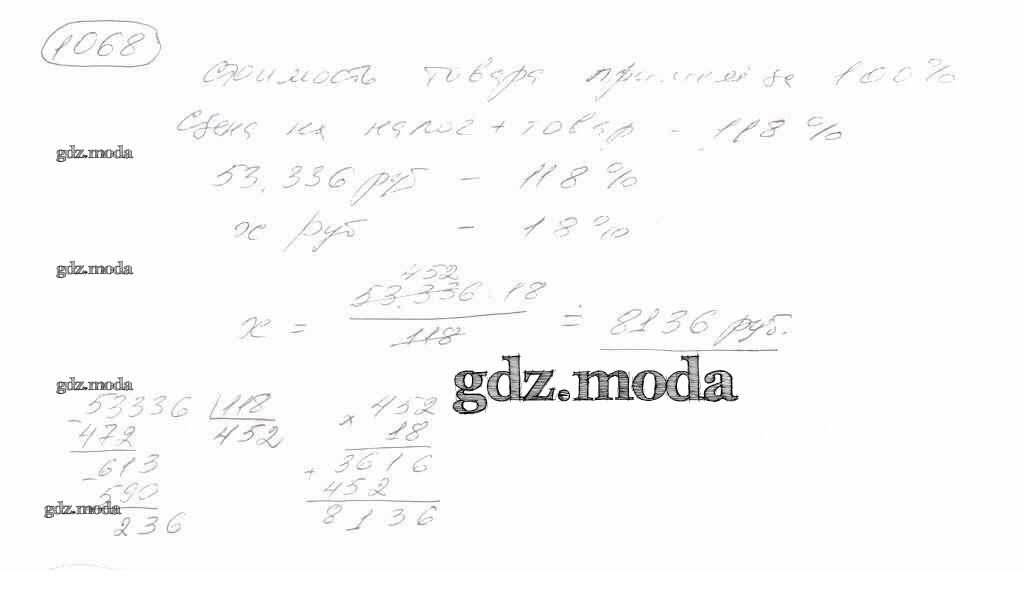 ГДЗ решение к заданию № 1068 Математика 6 класс Зубарева И.И. Мнемозина 2015 ФГОС бесплатно на гдз.мода!