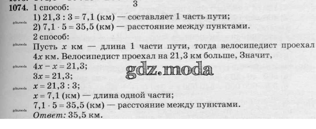 ГДЗ решение к заданию № 1074 Математика 6 класс Зубарева И.И. Мнемозина 2015 ФГОС бесплатно на гдз.мода!
