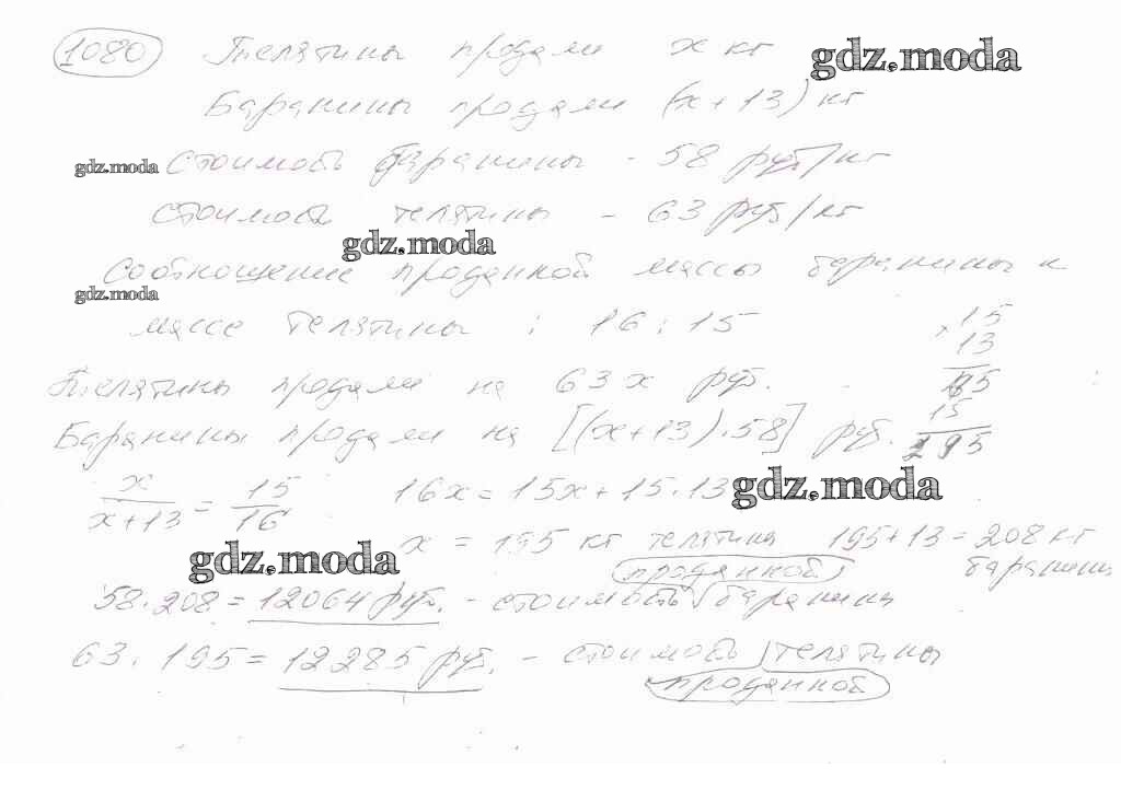 ГДЗ решение к заданию № 1080 Математика 6 класс Зубарева И.И. Мнемозина 2015 ФГОС бесплатно на гдз.мода!