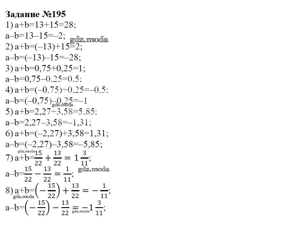 ОТВЕТ на задание № 195 Учебник по Математике 6 класс Зубарева