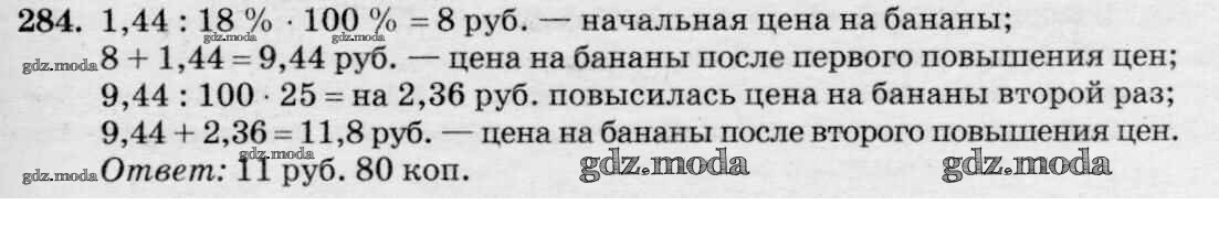 ОТВЕТ на задание № 284 Учебник по Математике 6 класс Зубарева