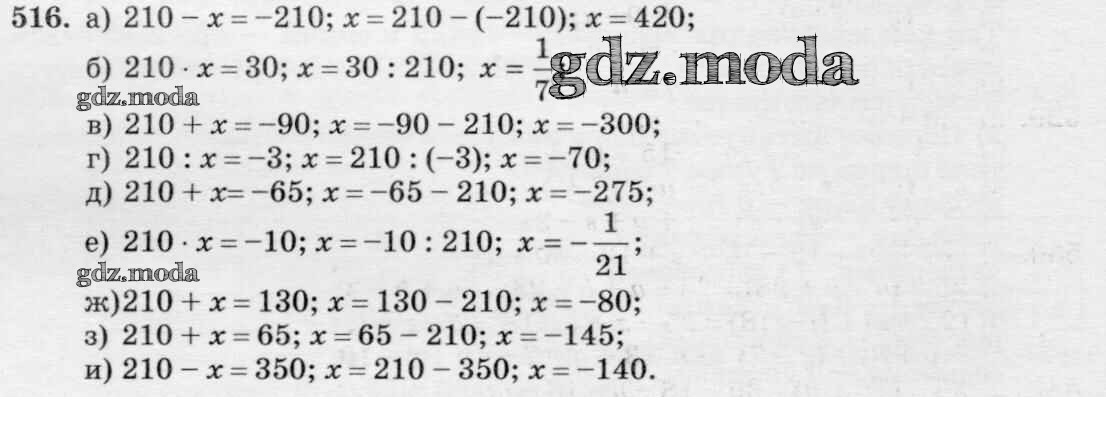 ОТВЕТ на задание № 516 Учебник по Математике 6 класс Зубарева