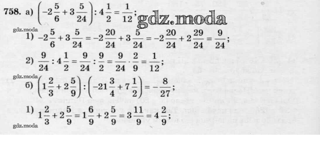 ОТВЕТ на задание № 758 Учебник по Математике 6 класс Зубарева