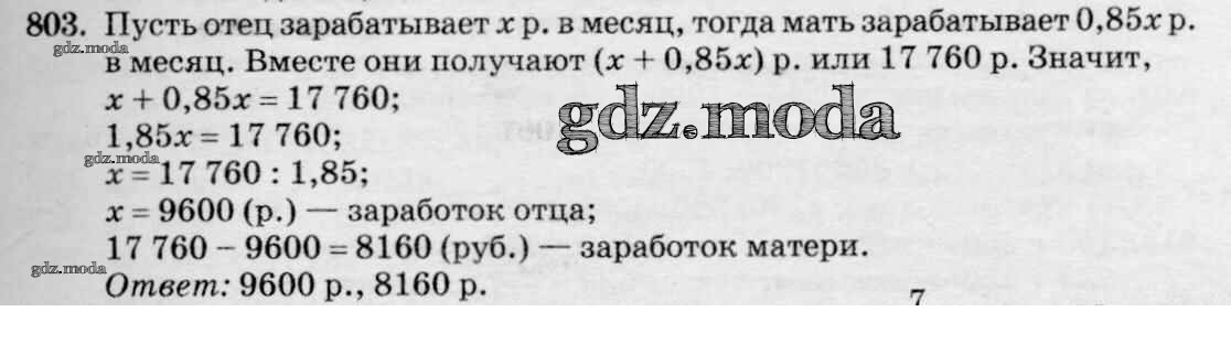 ГДЗ решение к заданию № 803 Математика 6 класс Зубарева И.И. Мнемозина 2015 ФГОС бесплатно на гдз.мода!