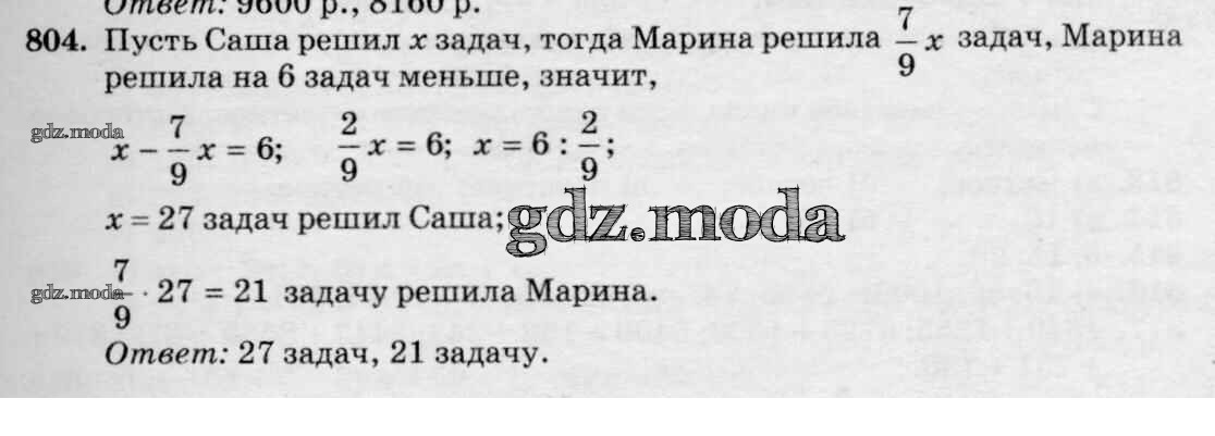 ОТВЕТ на задание № 804 Учебник по Математике 6 класс Зубарева