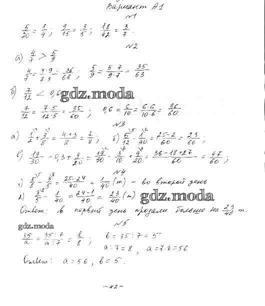ОТВЕТ на задание № А-1 Самостоятельные и контрольные работы по Математике 6 класс Ершова