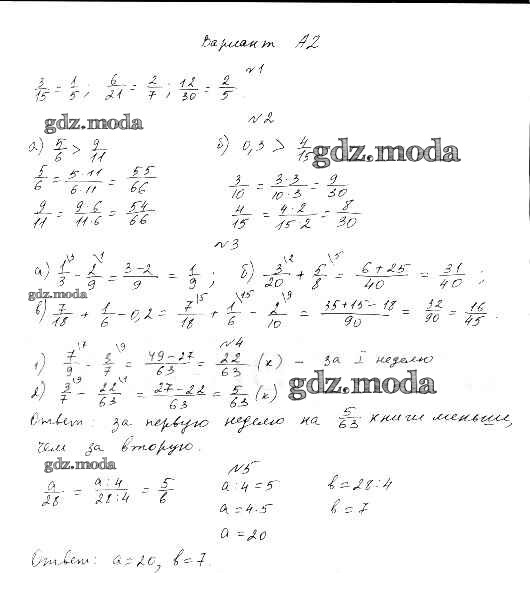 ГДЗ решение к заданию № А-2 Математика 6 класс самостоятельные и контрольные работы Ершова А.П. Илекса 2015 ФГОС бесплатно на гдз.мода!