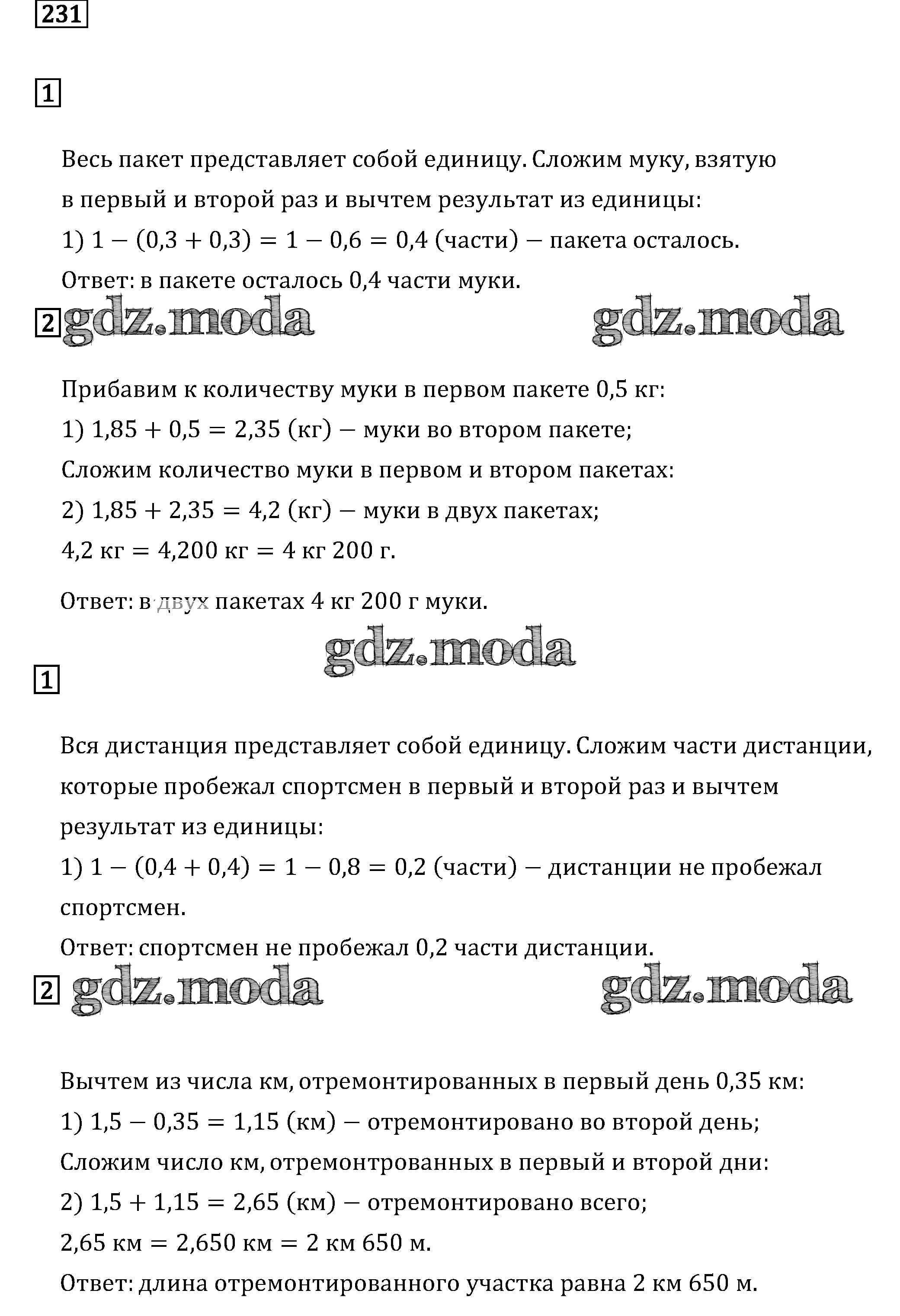 ГДЗ решение к заданию № 231 Математика 6 класс задачник Бунимович Е.А. Просвещение 2014 Часть 1, Часть 2 ФГОС бесплатно на гдз.мода!