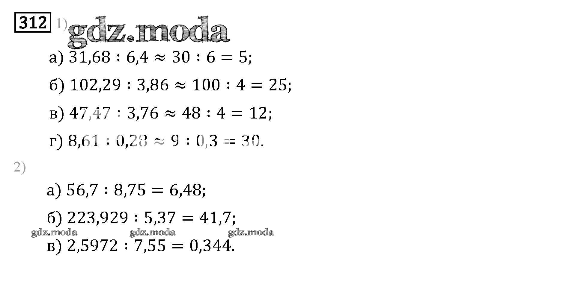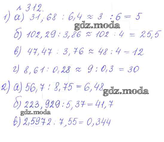 ГДЗ решение к заданию № 312 Математика 6 класс задачник Бунимович Е.А. Просвещение 2014 Часть 1, Часть 2 ФГОС бесплатно на гдз.мода!