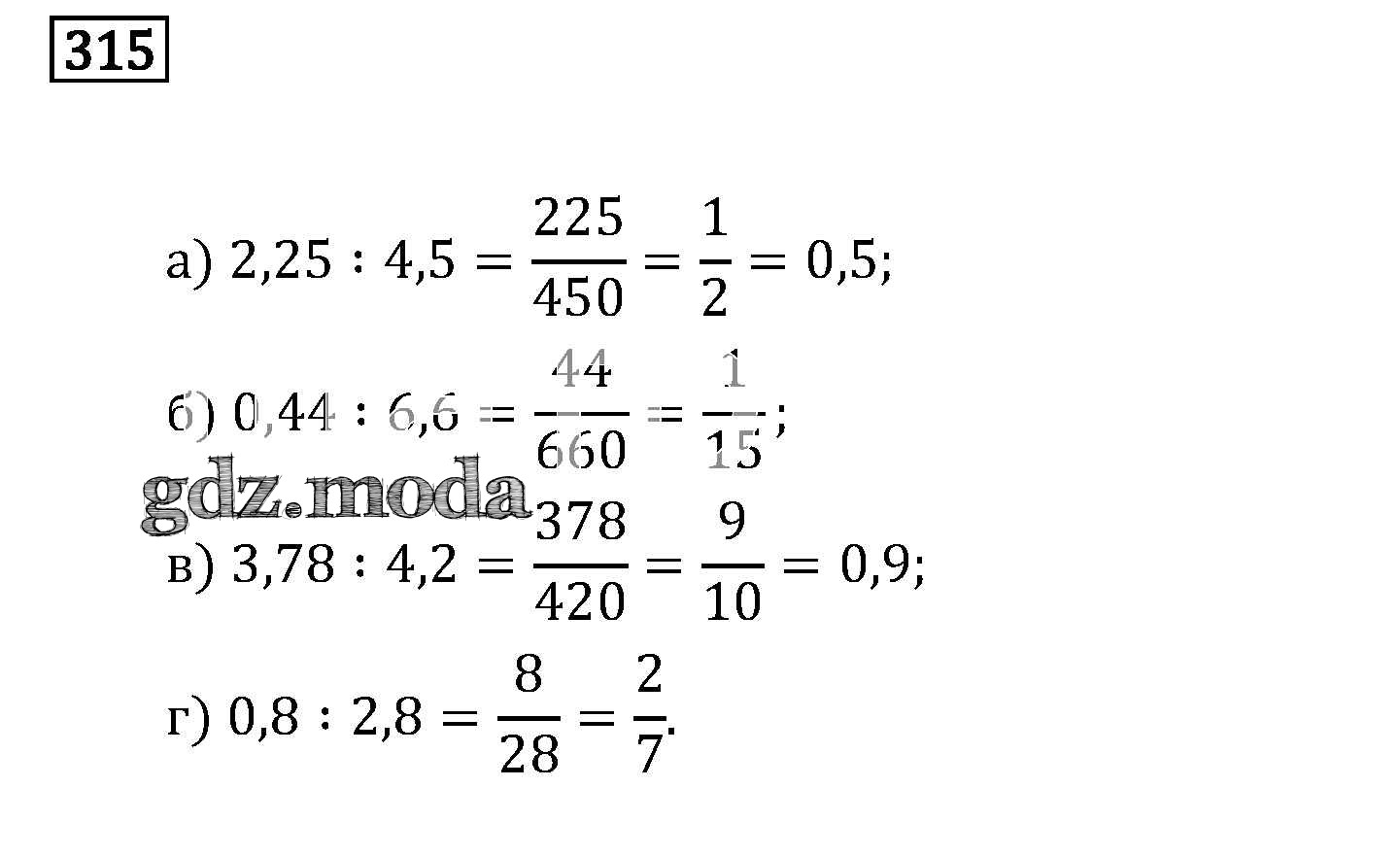 ГДЗ решение к заданию № 315 Математика 6 класс задачник Бунимович Е.А. Просвещение 2014 Часть 1, Часть 2 ФГОС бесплатно на гдз.мода!