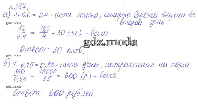 ГДЗ решение к заданию № 327 Математика 6 класс задачник Бунимович Е.А. Просвещение 2014 Часть 1, Часть 2 ФГОС бесплатно на гдз.мода!