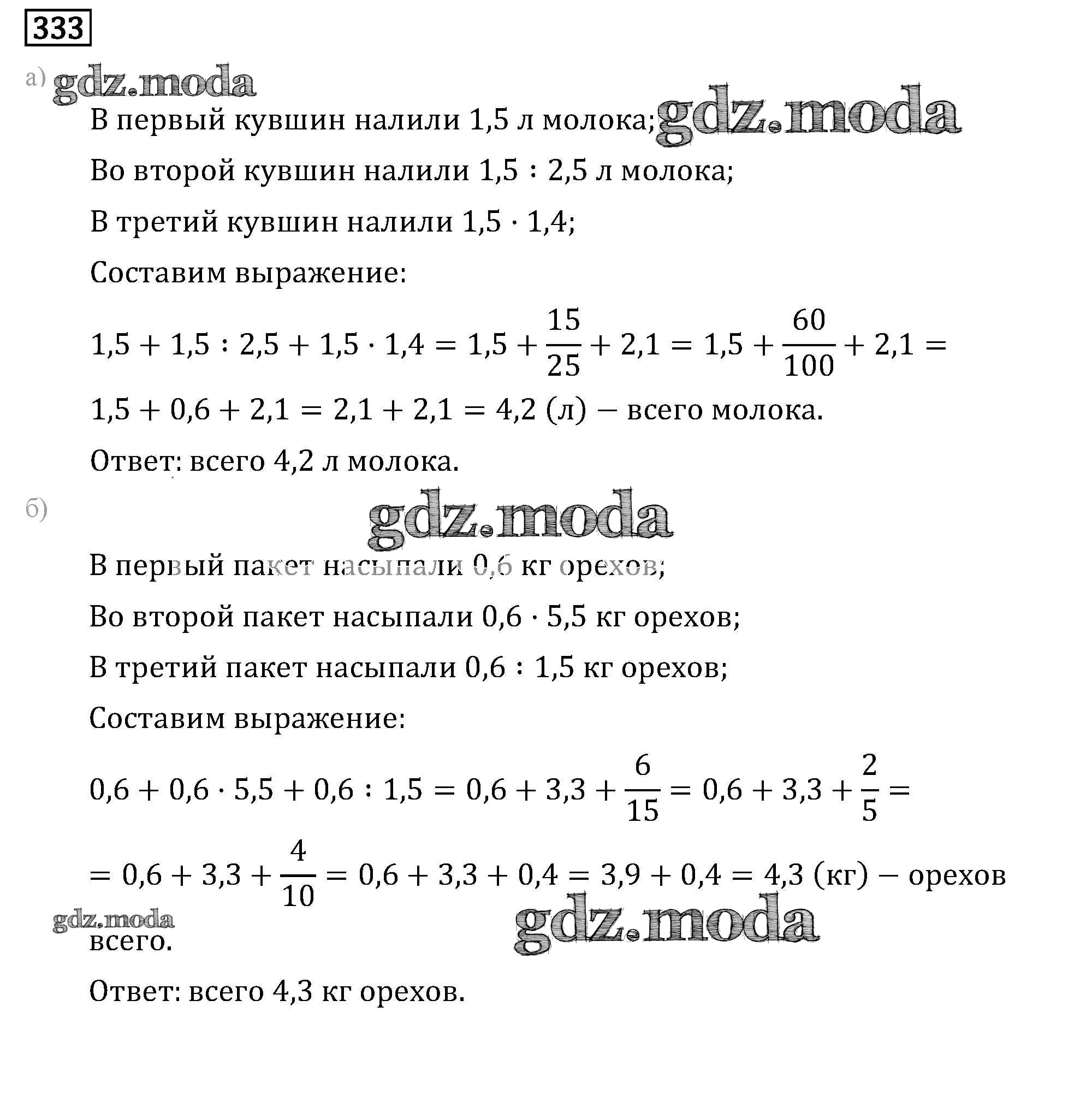 ГДЗ решение к заданию № 333 Математика 6 класс задачник Бунимович Е.А. Просвещение 2014 Часть 1, Часть 2 ФГОС бесплатно на гдз.мода!