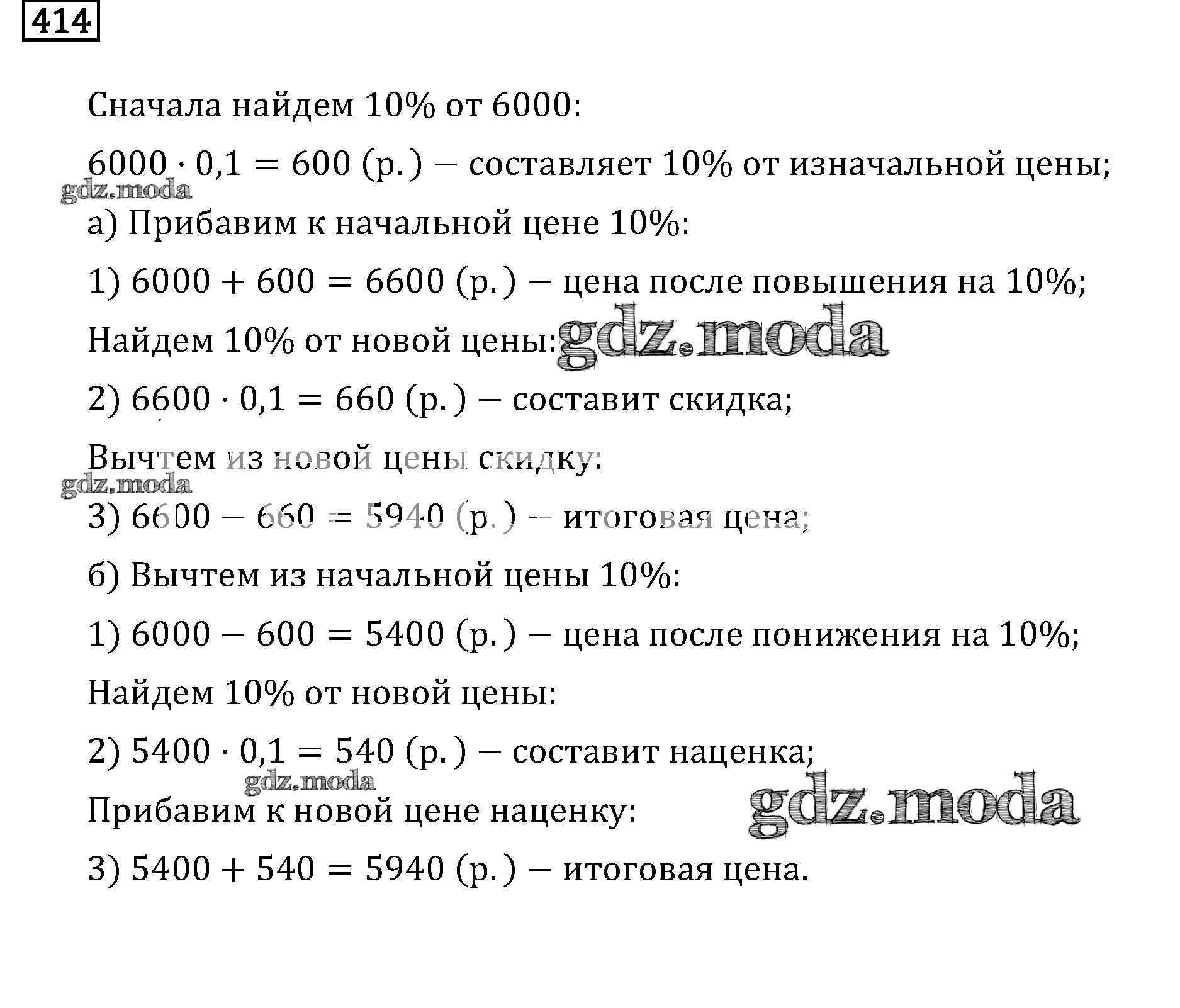 ГДЗ решение к заданию № 414 Математика 6 класс задачник Бунимович Е.А. Просвещение 2014 Часть 1, Часть 2 ФГОС бесплатно на гдз.мода!