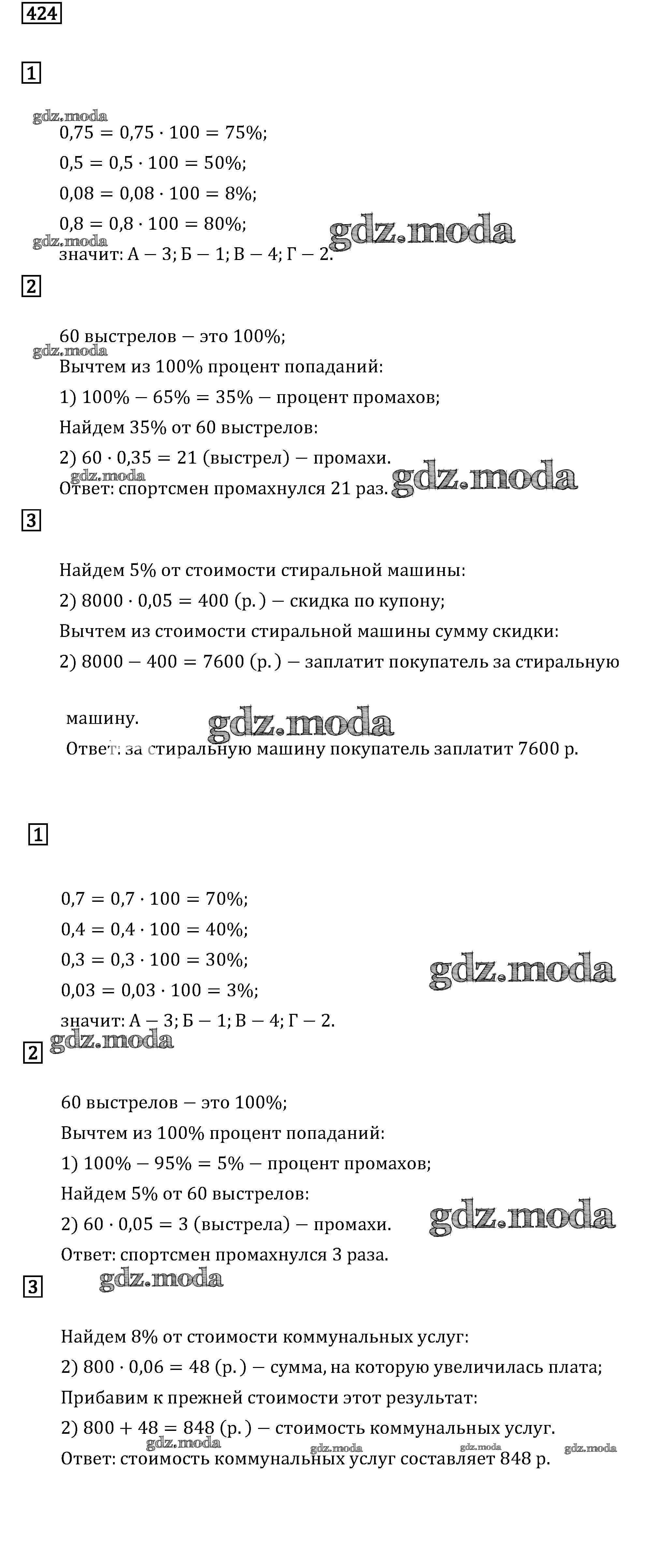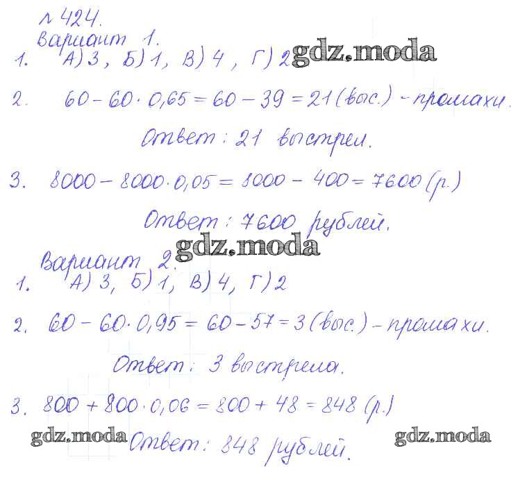ГДЗ решение к заданию № 424 Математика 6 класс задачник Бунимович Е.А. Просвещение 2014 Часть 1, Часть 2 ФГОС бесплатно на гдз.мода!