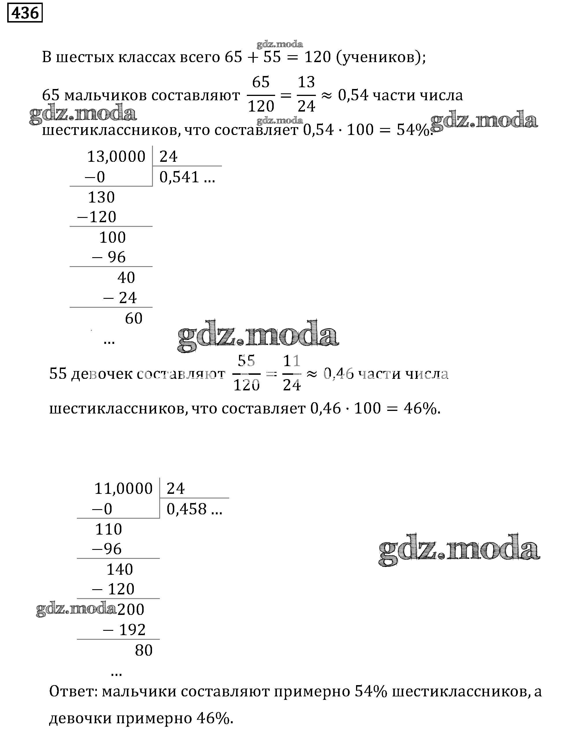 ГДЗ решение к заданию № 436 Математика 6 класс задачник Бунимович Е.А. Просвещение 2014 Часть 1, Часть 2 ФГОС бесплатно на гдз.мода!