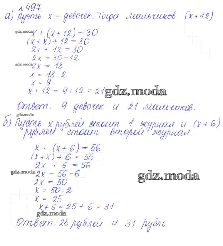 ГДЗ решение к заданию № 497 Математика 6 класс задачник Бунимович Е.А. Просвещение 2014 Часть 1, Часть 2 ФГОС бесплатно на гдз.мода!