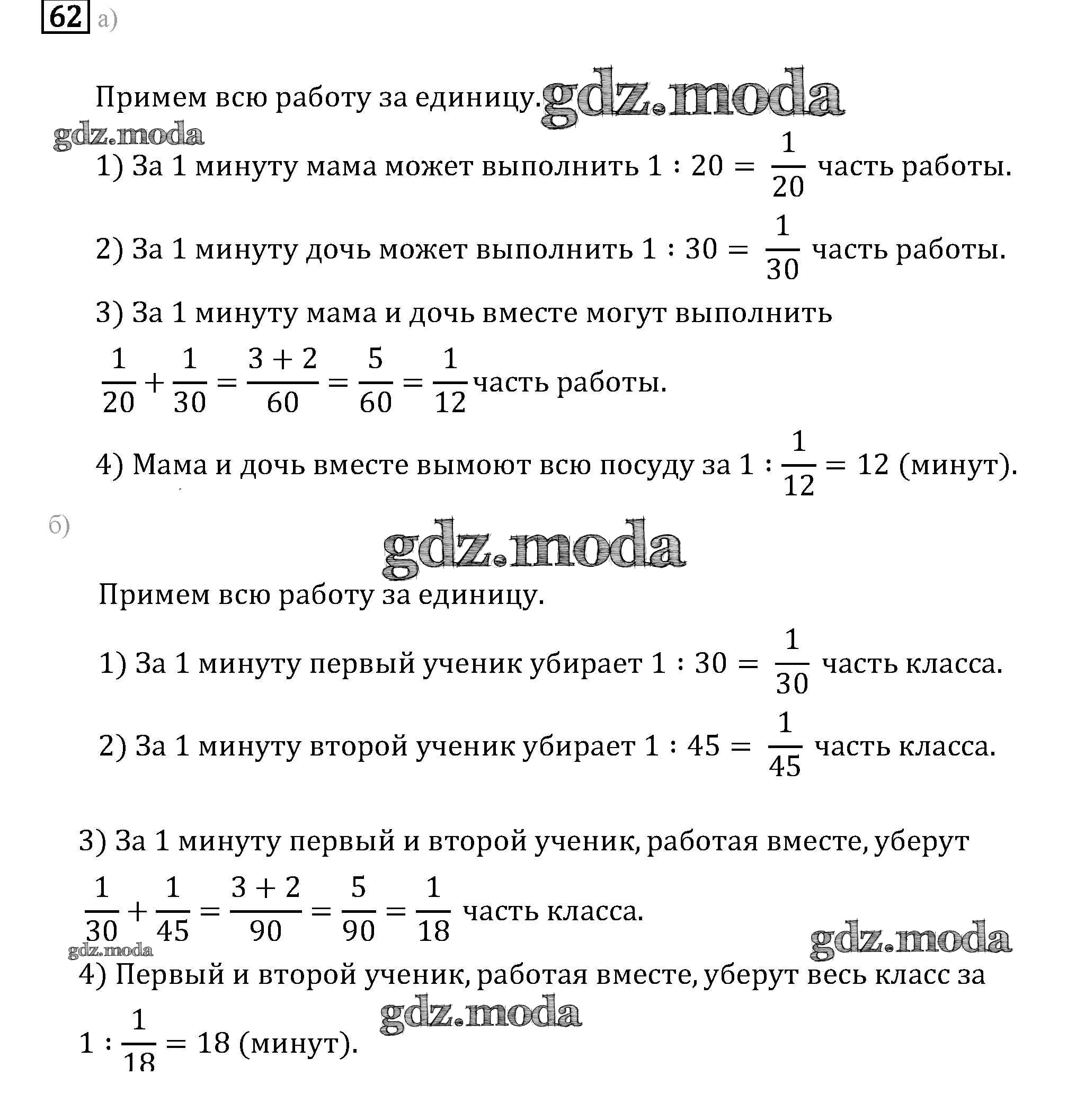 ГДЗ решение к заданию № 62 Математика 6 класс задачник Бунимович Е.А. Просвещение 2014 Часть 1, Часть 2 ФГОС бесплатно на гдз.мода!