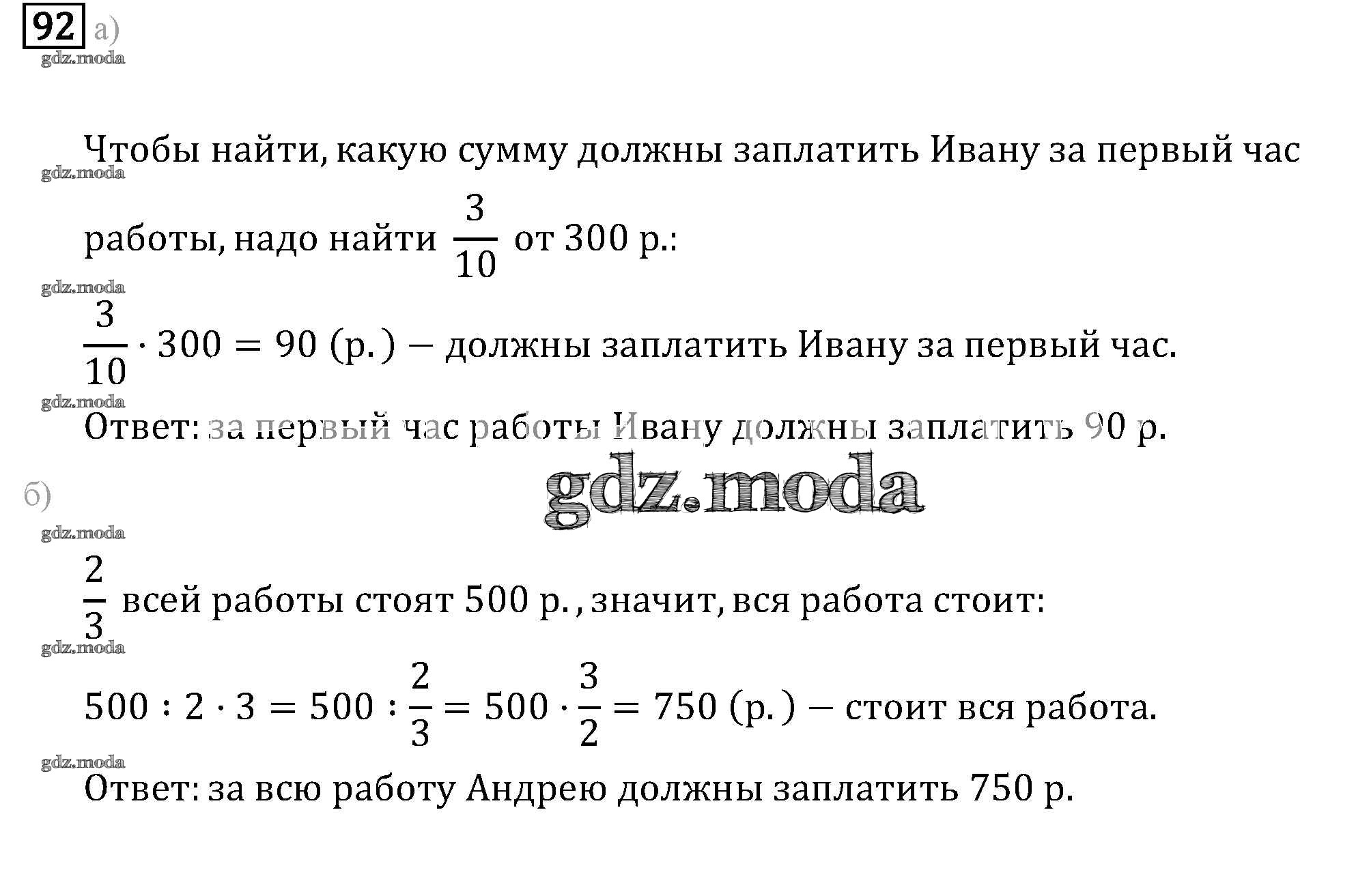 ГДЗ решение к заданию № 92 Математика 6 класс задачник Бунимович Е.А. Просвещение 2014 Часть 1, Часть 2 ФГОС бесплатно на гдз.мода!
