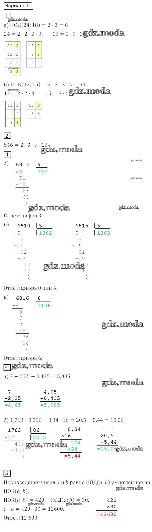 ГДЗ решение к заданию № 1 Математика 6 класс контрольные работы Жохов В.И. Мнемозина 2011 ФГОС бесплатно на гдз.мода!