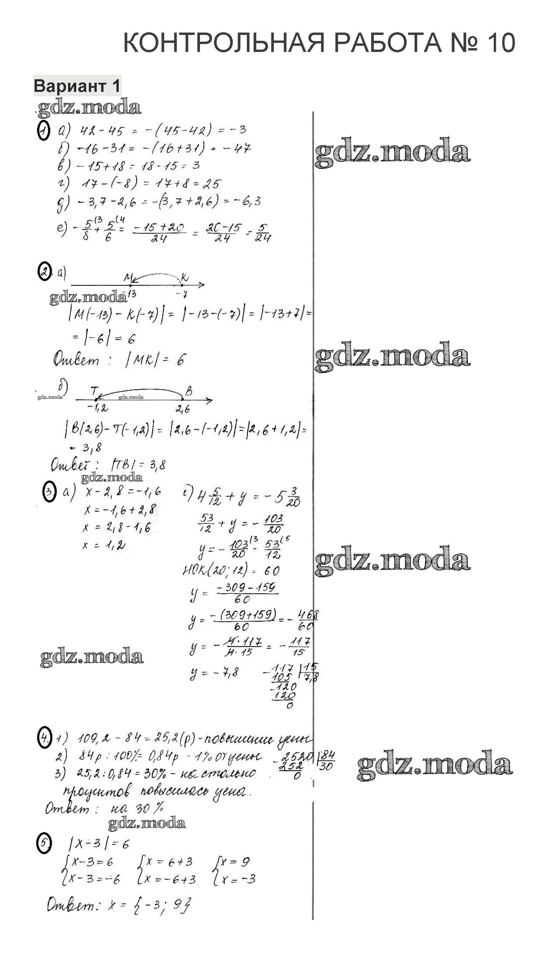 ГДЗ решение к заданию № 1 Математика 6 класс контрольные работы Жохов В.И. Мнемозина 2011 ФГОС бесплатно на гдз.мода!