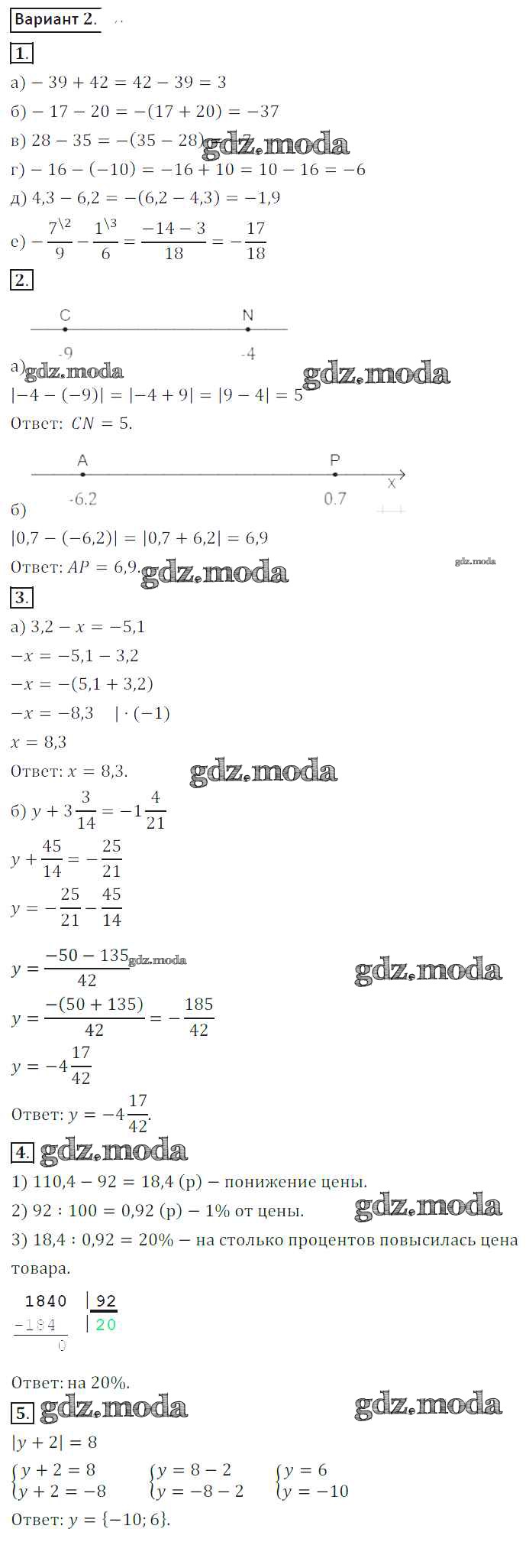 ГДЗ решение к заданию № 2 Математика 6 класс контрольные работы Жохов В.И. Мнемозина 2011 ФГОС бесплатно на гдз.мода!