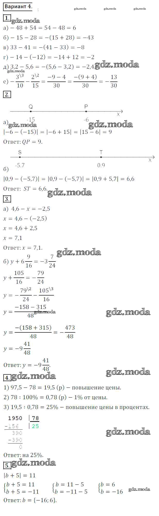 ГДЗ решение к заданию № 4 Математика 6 класс контрольные работы Жохов В.И. Мнемозина 2011 ФГОС бесплатно на гдз.мода!