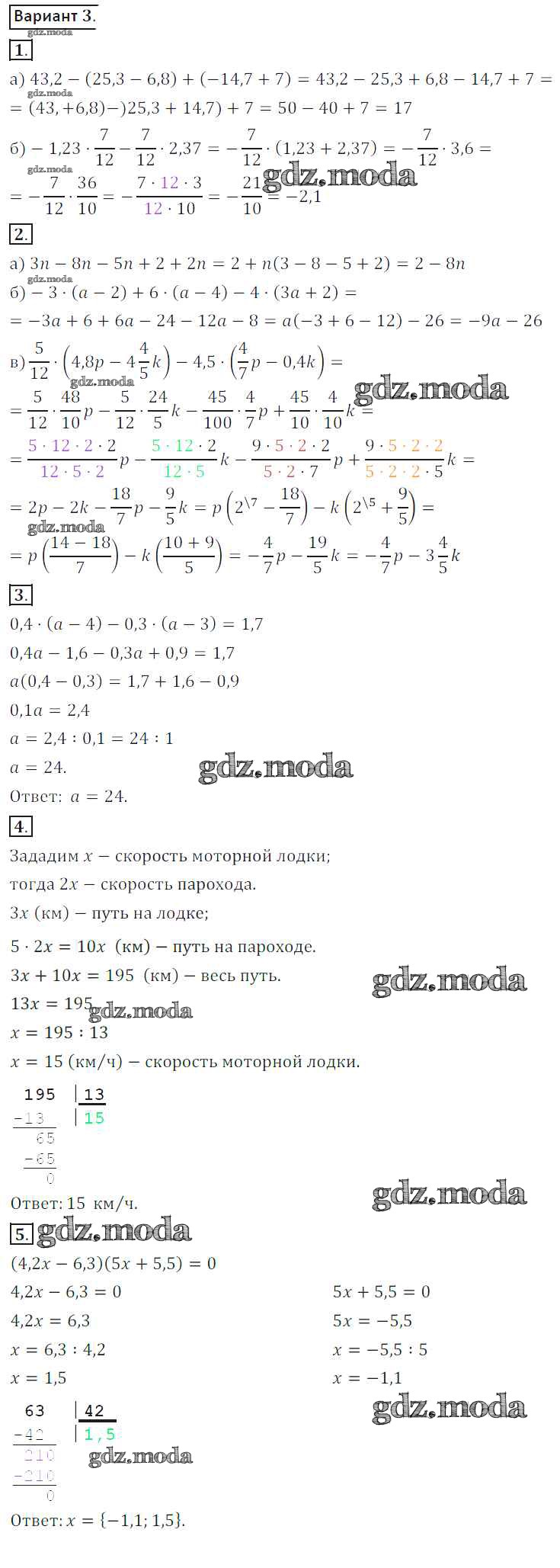 ГДЗ решение к заданию № 3 Математика 6 класс контрольные работы Жохов В.И. Мнемозина 2011 ФГОС бесплатно на гдз.мода!