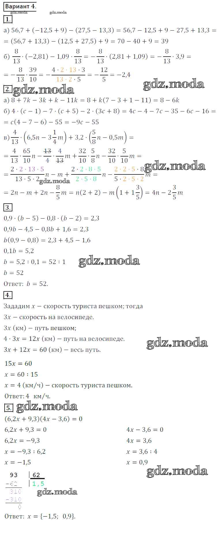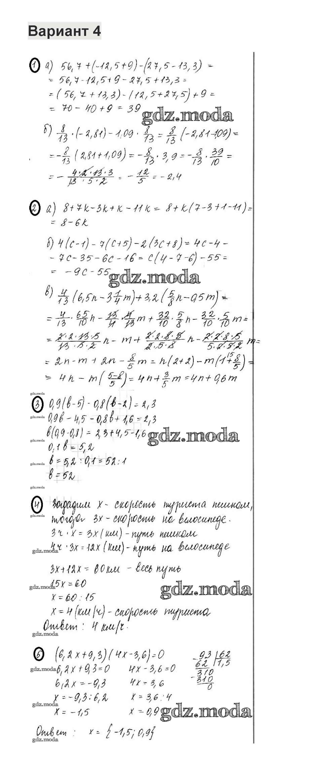 ГДЗ решение к заданию № 4 Математика 6 класс контрольные работы Жохов В.И. Мнемозина 2011 ФГОС бесплатно на гдз.мода!