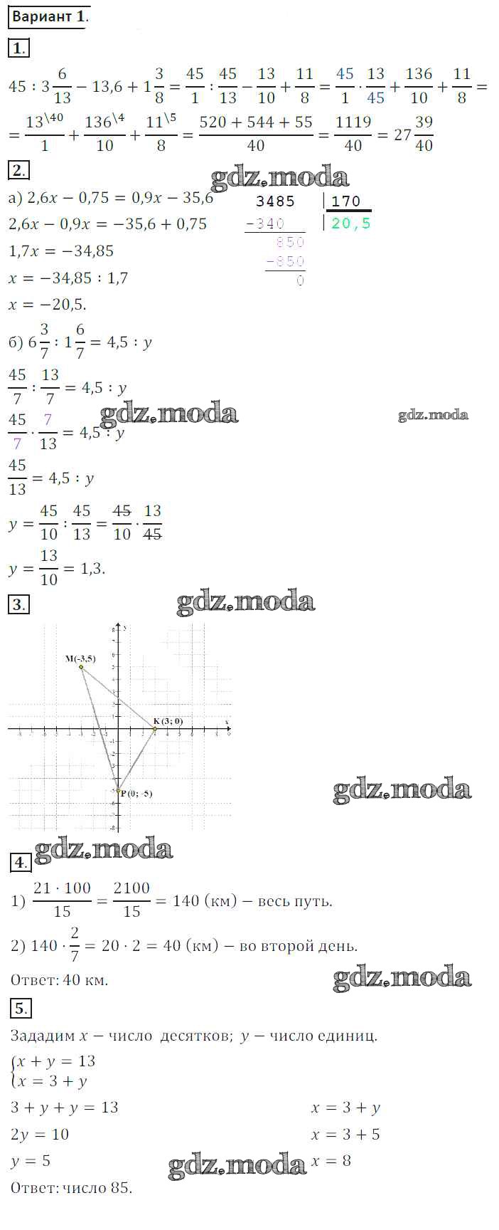 ГДЗ решение к заданию № 1 Математика 6 класс контрольные работы Жохов В.И. Мнемозина 2011 ФГОС бесплатно на гдз.мода!