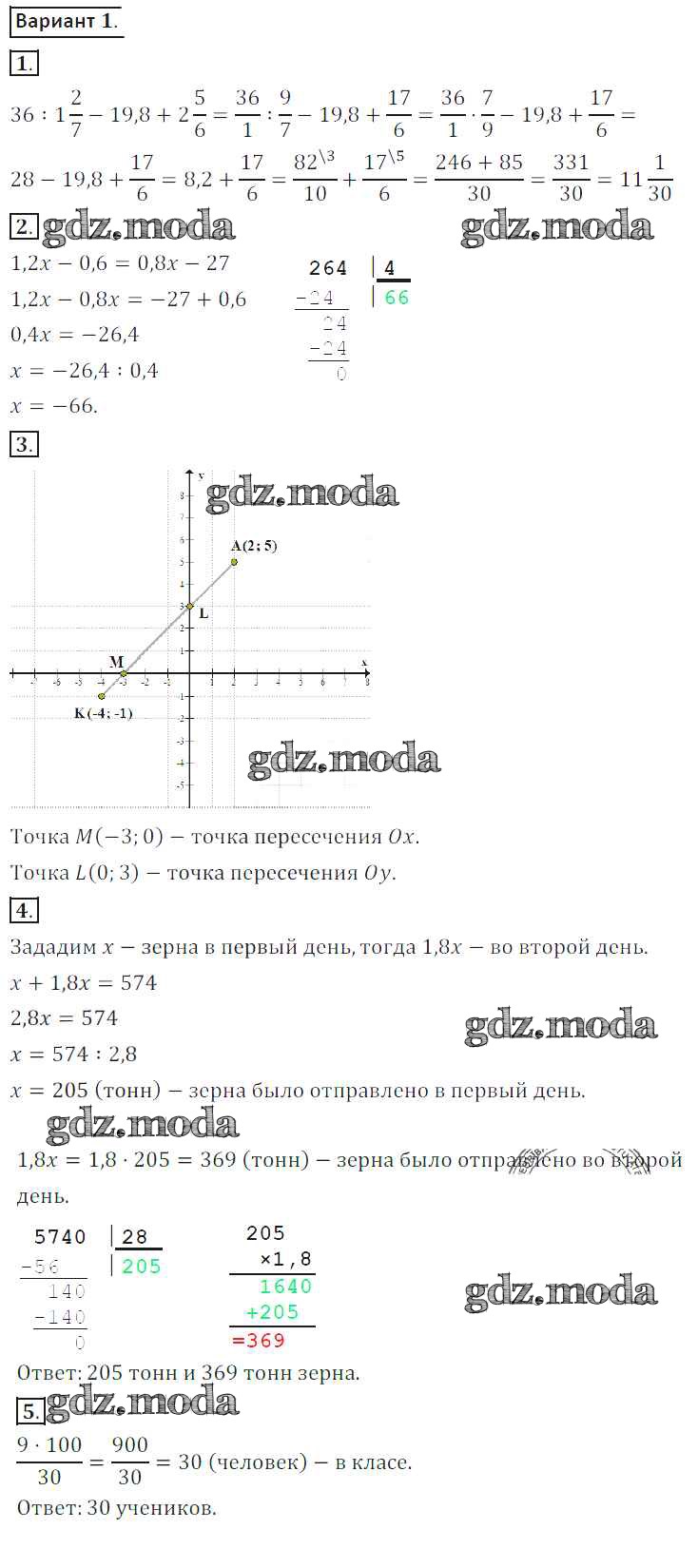 ГДЗ решение к заданию № 1 Математика 6 класс контрольные работы Жохов В.И. Мнемозина 2011 ФГОС бесплатно на гдз.мода!